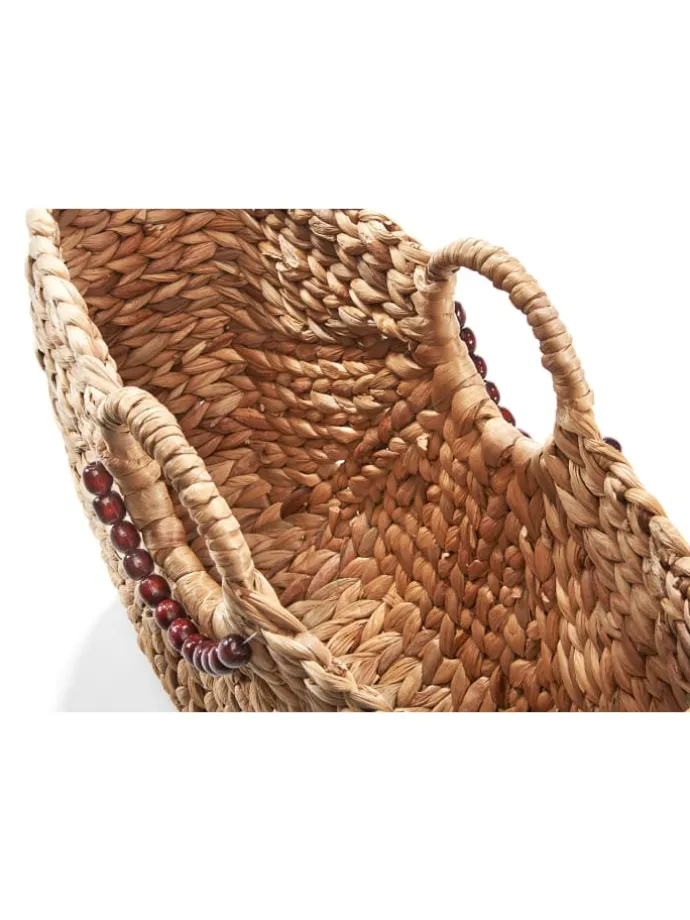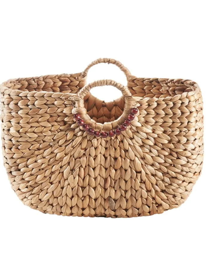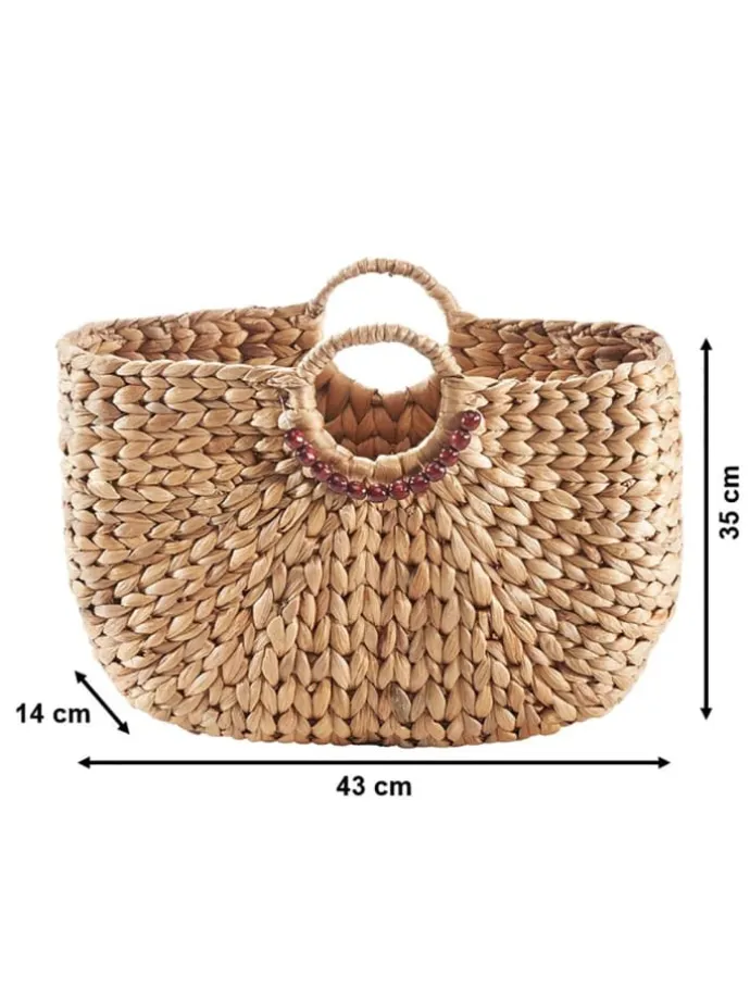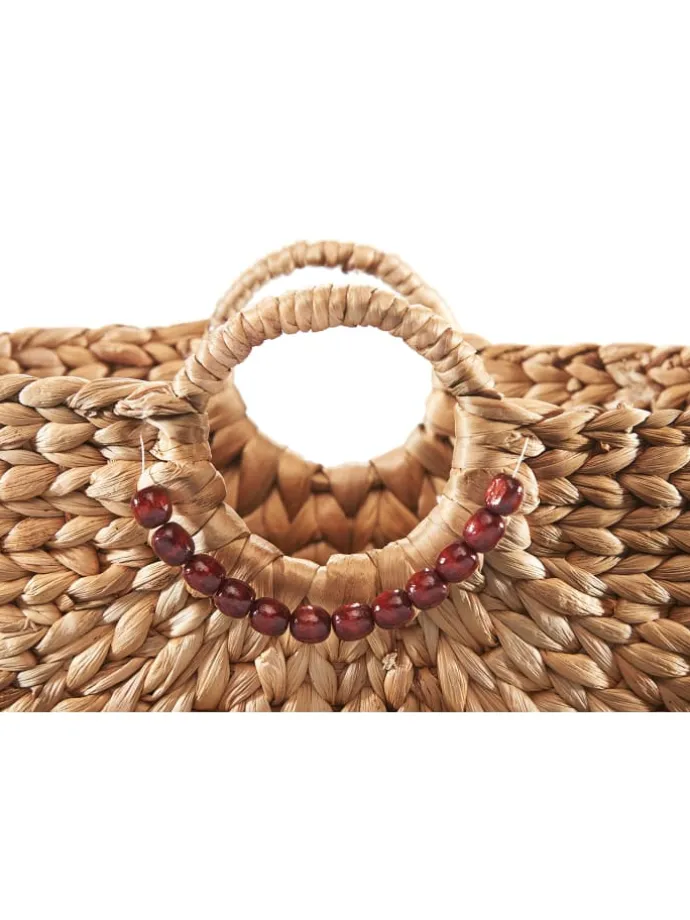 Voll im Trend – Unsere Handtasche von Kobolo aus Wasserhyazinthe mit kurzem runden Henkel und einer Verzierung aus Holzperlen ist das perfekte Accessoire für Ihren Sommerlook. Must-Have – Werten Sie mit dieser Tasche aus geflochtener Wasserhyazinthe Ihre Outfits auf oder nutzen Sie sie als Dekoobjekt, um ein natürliches Boho-Flair in Ihr Zuhause zu zaubern. Immer passend – Durch die angenehme Größe wirkt unsere Korbtasche nicht aufdringlich aber bietet genügend Platz für kleine Einkäufe oder einen Tag am Strand. Alltagstauglich – Ob Büro, Einkauf, Strand oder Urlaub, mit dieser Tasche erhalten Sie den idealen Begleiter für jede Situation.