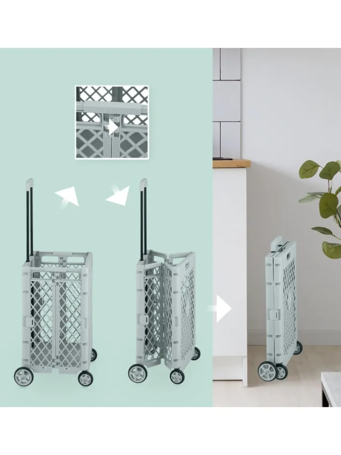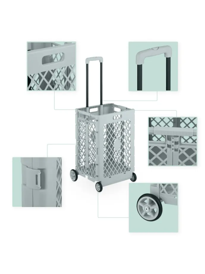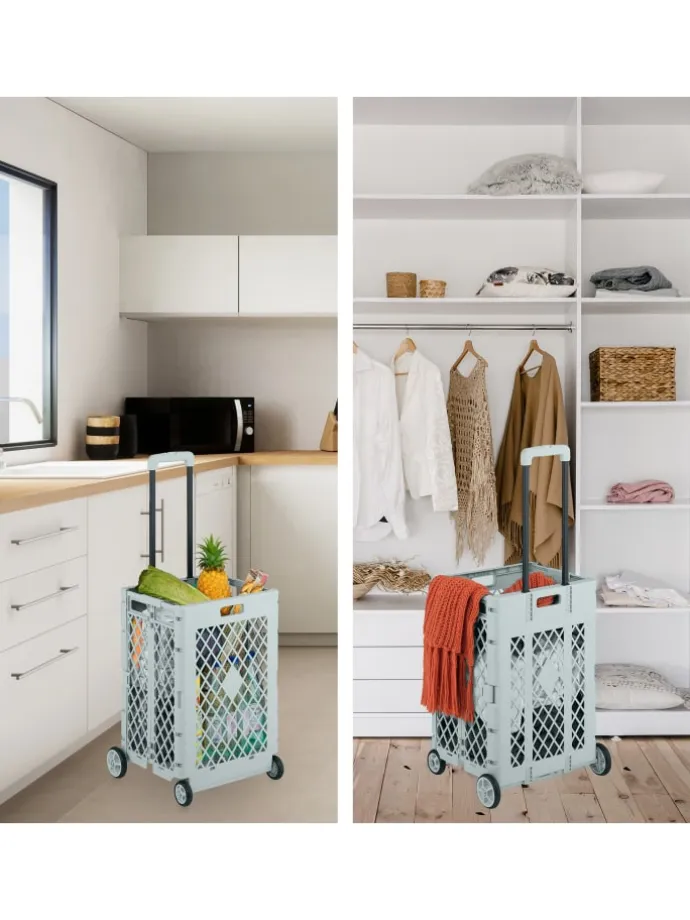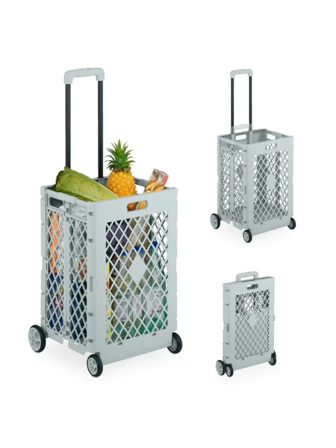 Der Klapptrolley ist der perfekte Begleiter, ob für Einkauf, Camping oder daheim. Mit dem großen Fassungsvermögen und der hohen Traglast bietet die Transportkiste ausreichend Platz für Einkäufe, Wäsche und mehr. Dank der Rollen und des Teleskopgriffs kannst Du den Rollwagen bequem und rückenschonend hinter Dir herziehen. Nach der Benutzung lässt sich der Einkaufskorb mit wenigen Handgriffen platzsparend zusammenfalten und passt so in jede Nische oder wahlweise ins Auto.