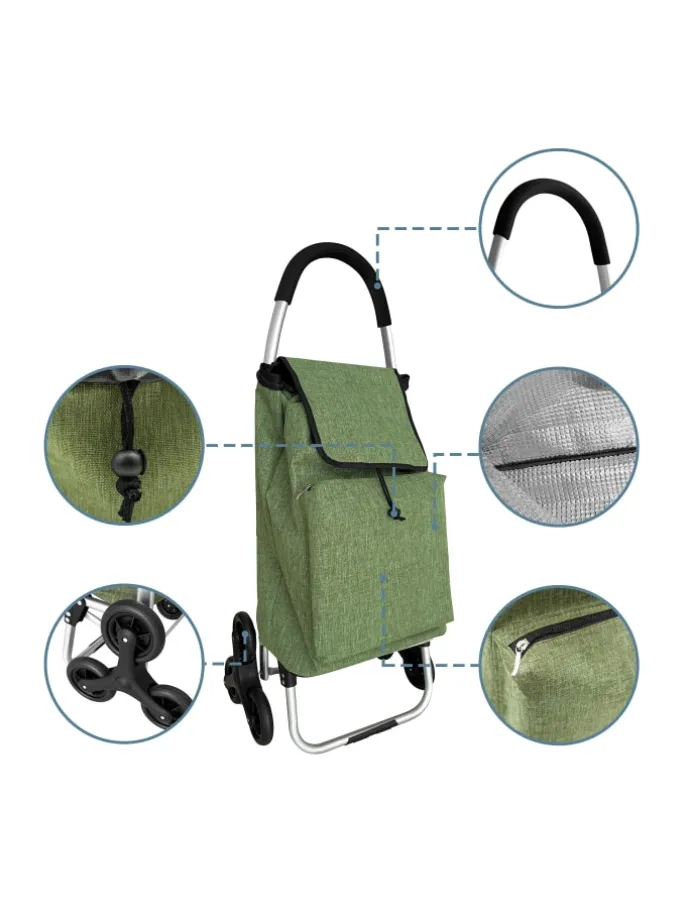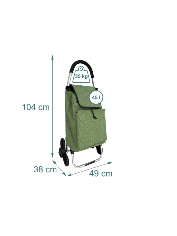 Der Shopping-Trolley ist der perfekte Begleiter für Deinen Einkaufsbummel. Mit seinem großen Fassungsvermögen und der hohen Traglast bietet der Einkaufsroller ausreichend Platz für Deinen Wocheneinkauf und verfügt zudem über eine integrierte Kühltasche. Die Treppensteigerräder ermöglichen Dir einen mühlelosen Transport über Stufen. Dank der abnehmbaren Tasche kann der Trolley auch als Sackkarre für Getränkekisten und andere schwere Gegenstände verwendet werden.