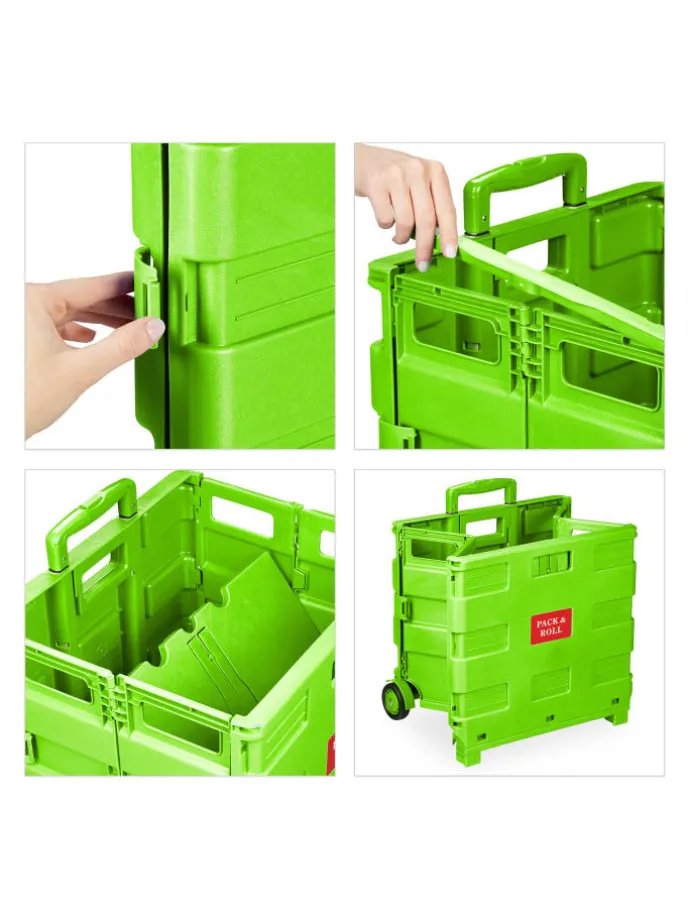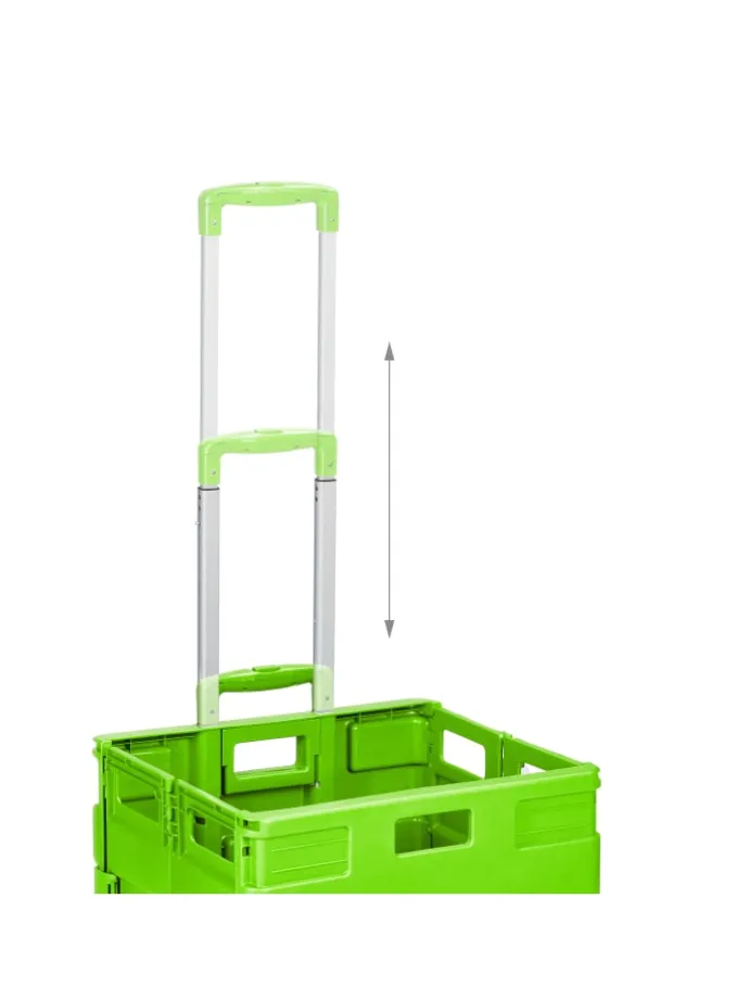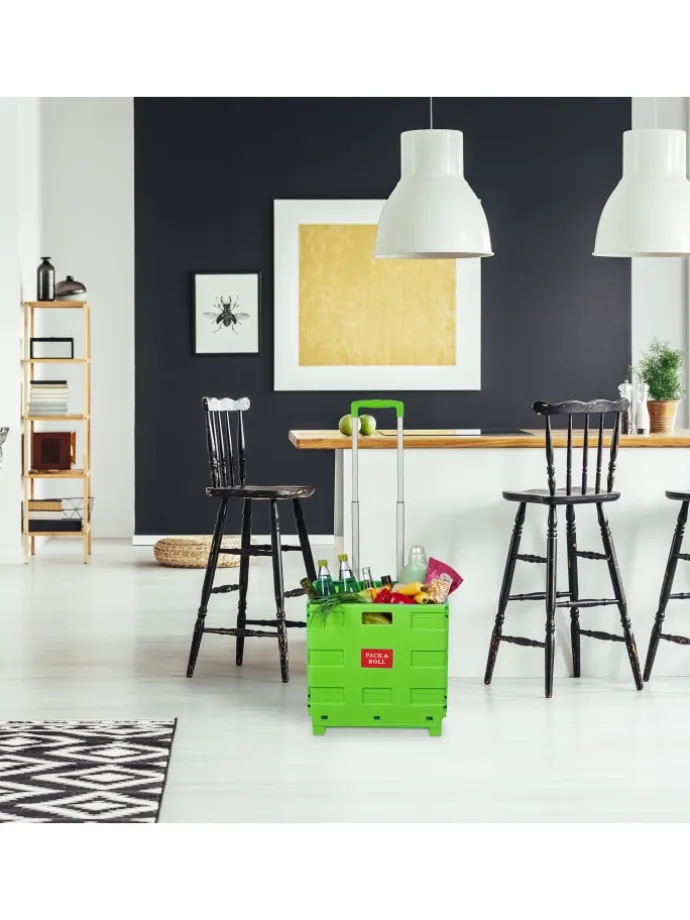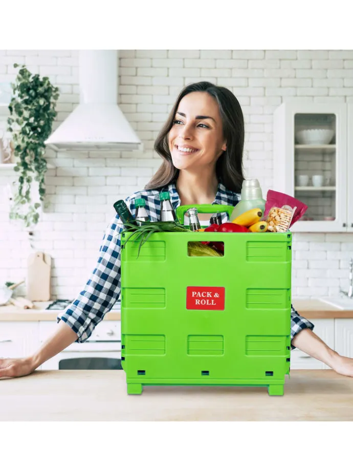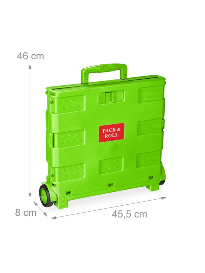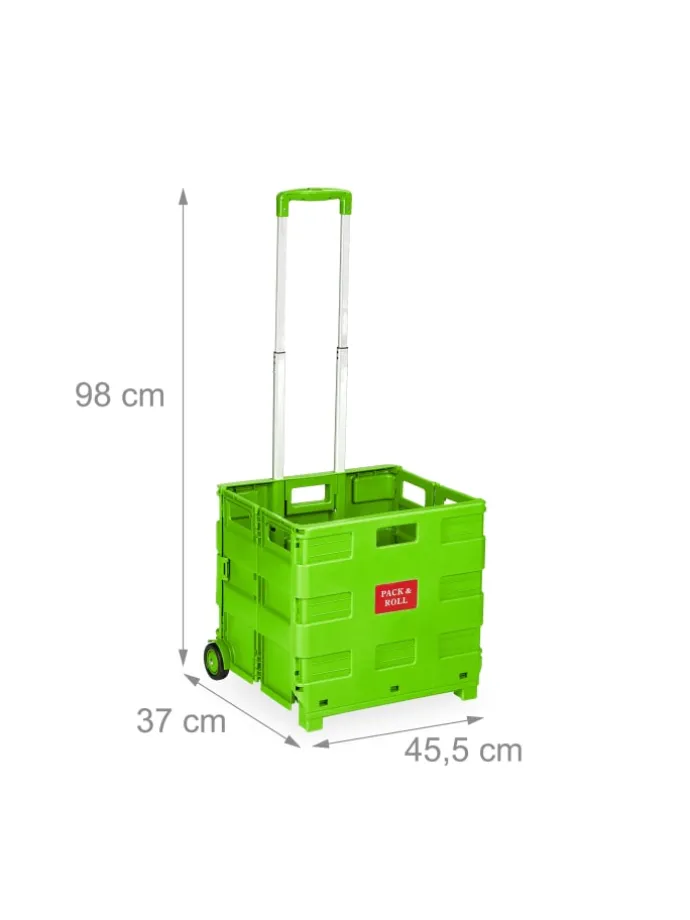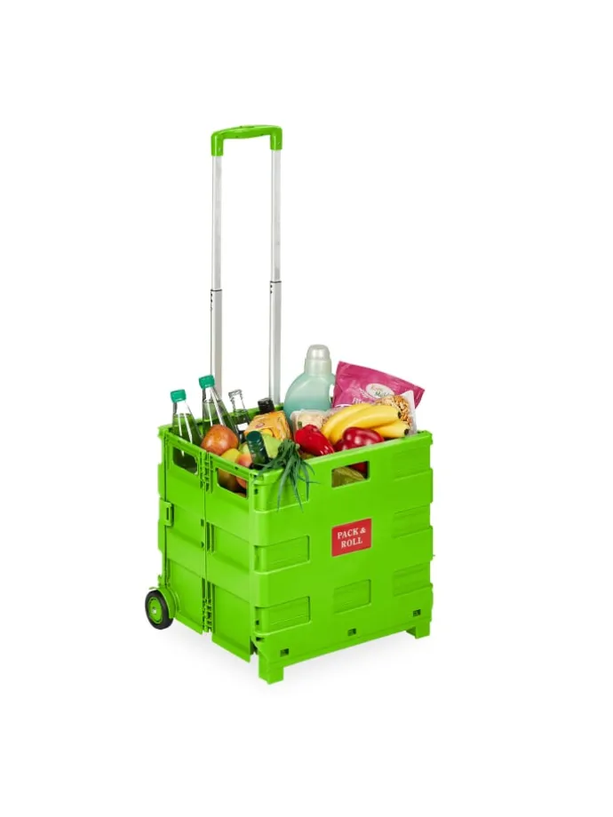 Dieser Einkaufstrolley ist die rückenschonende Lösung für Deinen Wocheneinkauf. In der klappbaren Rollkiste kannst Du bis zu 35 kg Lebensmittel, Getränke und vieles mehr unterbringen und bequem transportieren. Nach der Benutzung lässt sich der Transporttrolley mit wenigen Handgriffen platzsparend zusammenfalten und findet ohne Probleme Platz im Kofferraum – bereit für den nächsten Einsatz. Mit eingefahrenem Griff punktet der Klapptrolley auch als vielseitige Aufbewahrungsbox im Haushalt.