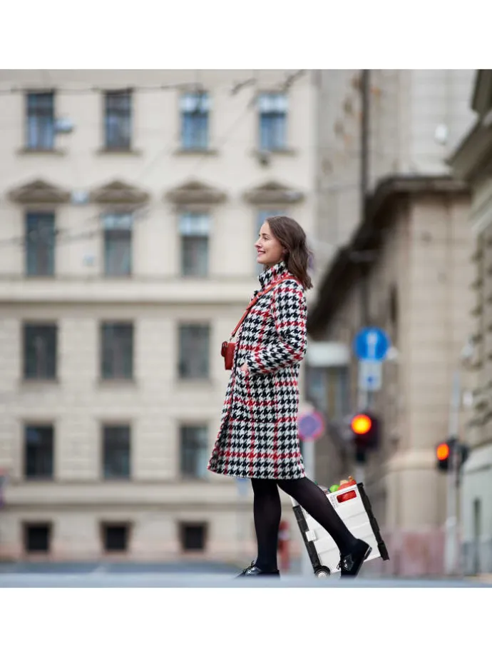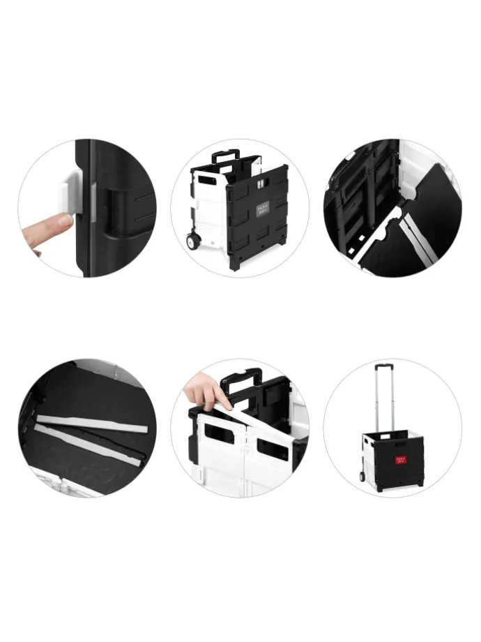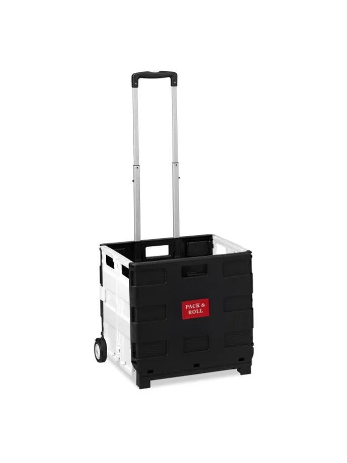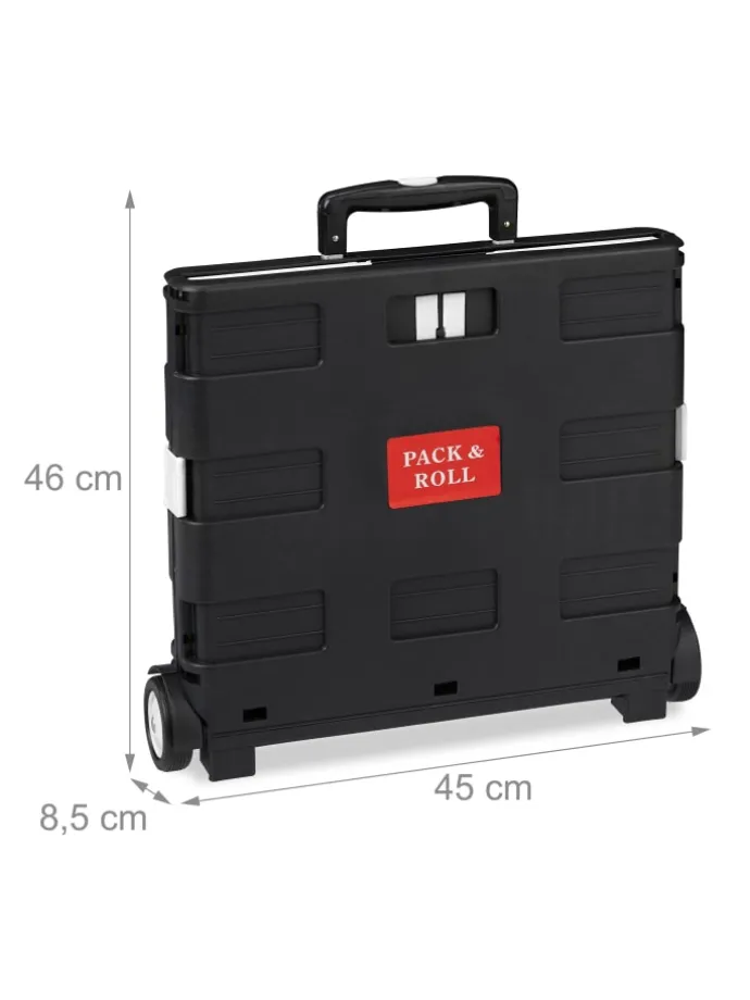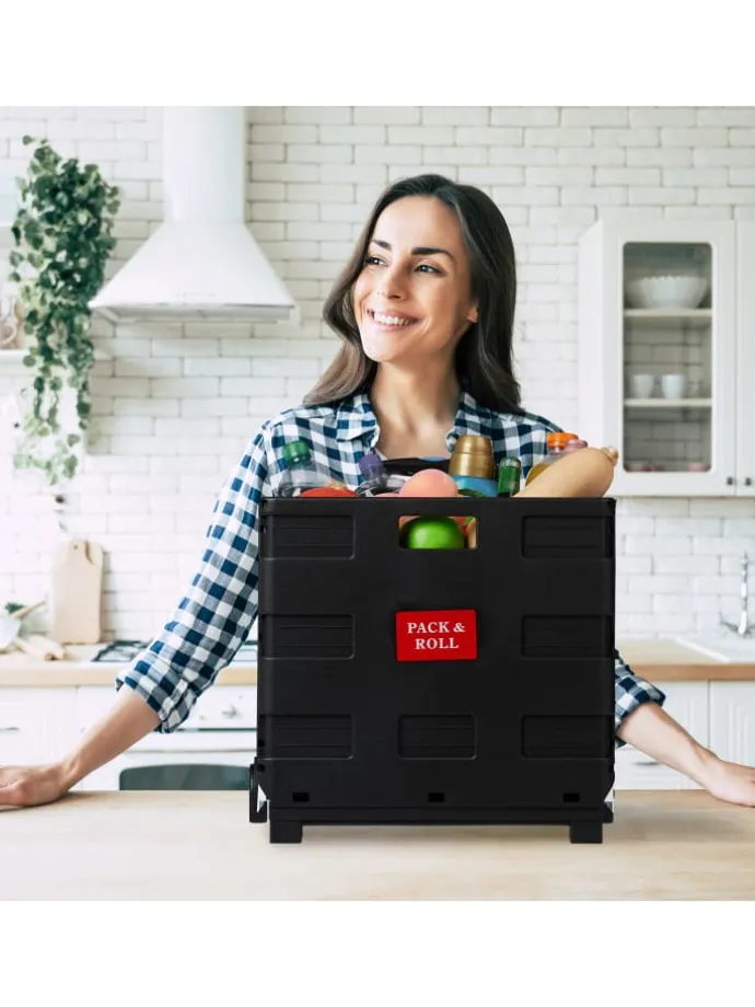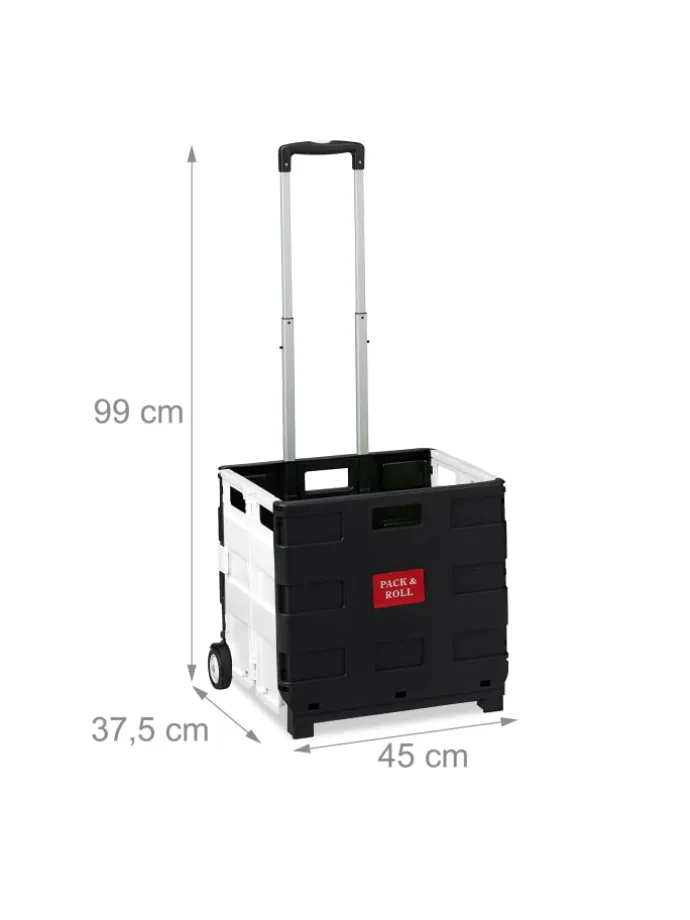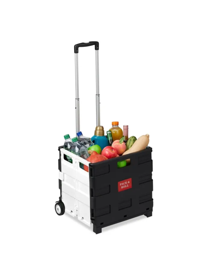 Sie tragen unhandliche Klappboxen oder viele Taschen nach dem Einkauf? Dieser Einkaufstrolley ist die rückenschonende Lösung für Ihren Wocheneinkauf. In der klappbaren Rollkiste können Sie bis zu 35 kg Lebensmittel, Getränke und vieles mehr unterbringen. Nach der Benutzung lässt sich der Transporttrolley platzsparend zusammenfalten und wartet in einer Ecke auf den nächsten Einsatz. Der sichere Transport des Inhalts ist durch Stabilisatoren gewiss, sodass er auch für den ÖPNV geeignet ist.