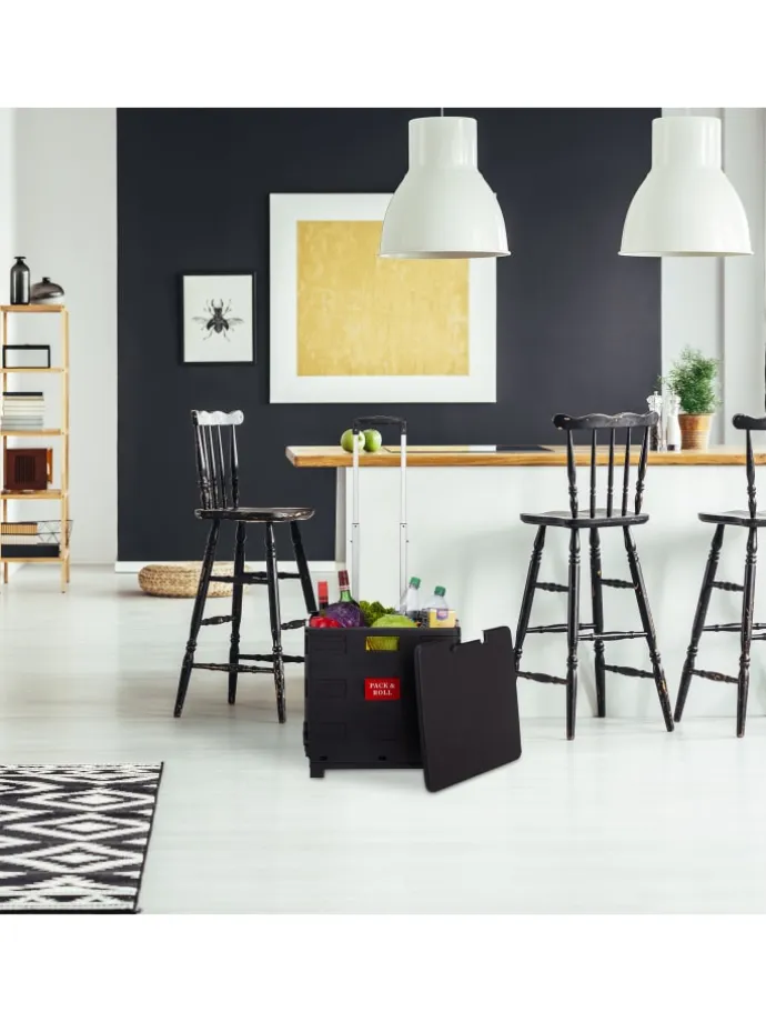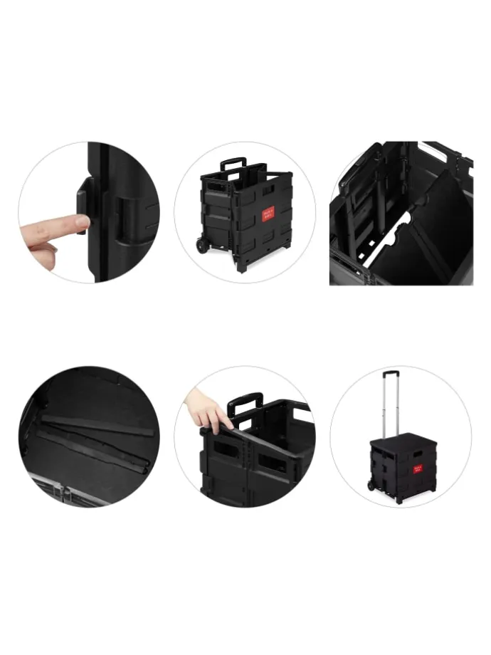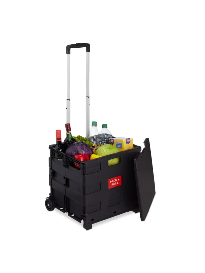 Unhandliche Klappboxen oder viele Taschen nach dem Einkauf? Dieser Einkaufstrolley ist die rückenschonende Lösung für Ihren Wocheneinkauf. In der klappbaren Rollkiste können Sie bis zu 35 kg Lebensmittel, Getränke und vieles mehr unterbringen. Nach der Benutzung lässt sich der Transporttrolley platzsparend zusammenfalten und wartet in einer Ecke auf den nächsten Einsatz. Für den sicheren Transport des Inhalts sorgt der Deckel des Kisten Trolleys, sodass er auch für den ÖPNV geeignet ist.
