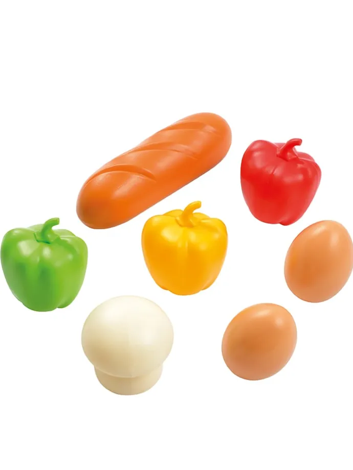 – Zubehör: Spiellebensmittel (Eier, Gemüse, Brot)