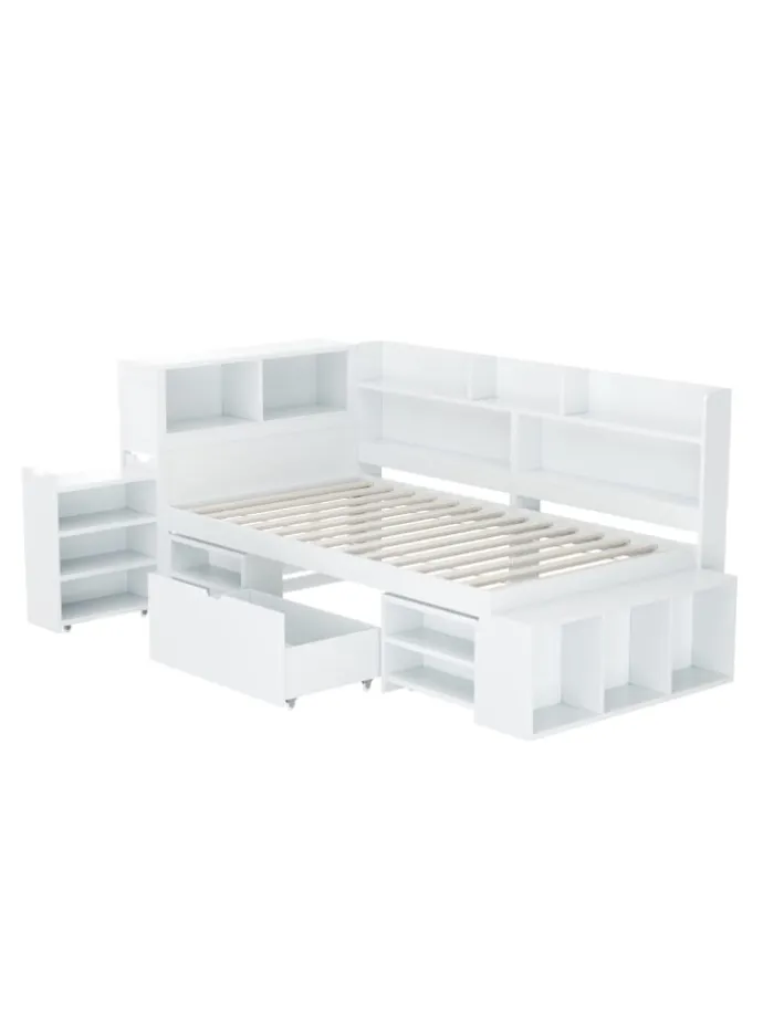Dieses Kinderbett kombiniert ein Bett, Schubladen, Bücherregale und Aufbewahrungsschränke, die die Raumnutzung maximieren und eine ordentliche Lebens- und Lernumgebung für Ihr Kind schaffen können.