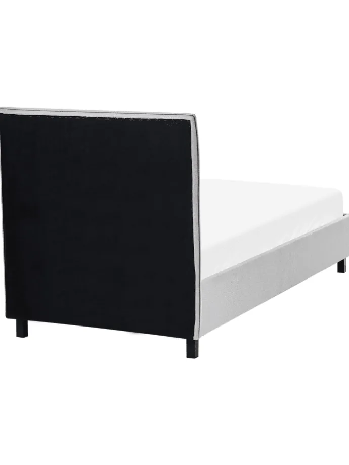 Modernes Einzelbett mit hohem Kopfteil und Polsterbezug in elegantem Grau in Leinenoptik. Dieses Stoffbett verfügt über ein hohes, angenehm gepolstertes Kopfteil, das Sie entspannt anlehnen lässt. Dank des pflegeleichten grauen Bezugs, der schwarzen Metallbeine, des schlichten Designs sowie des dekorativ verarbeiteten Kopfteils lässt sich dieses bequeme Polsterbett hervorragend mit modernen, natürlichen, ländlichen und skandinavischen Einrichtungsstilen kombinieren.