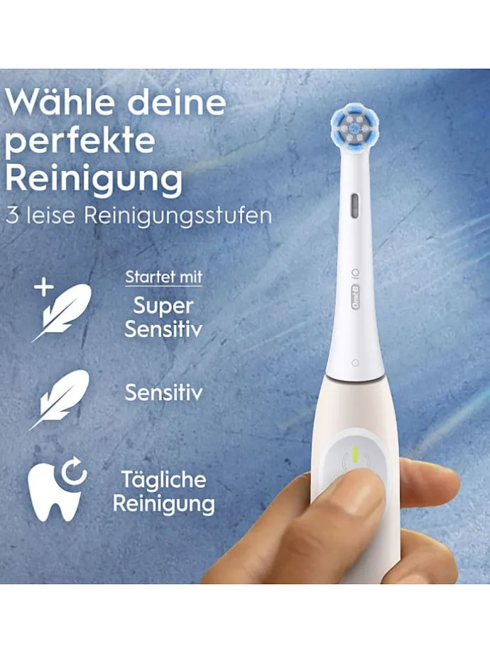 – 3 leise Reinigungsstufen für ein persönliches Putzerlebnis: Tägliche Reinigung, Sensitiv, Super Sensitiv