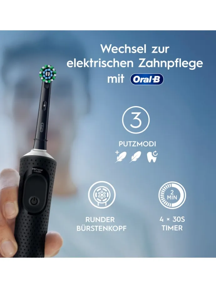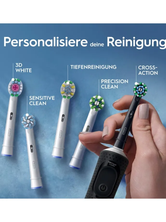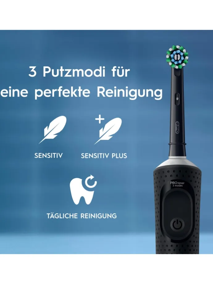 Die Oral-B Vitality Pro wiederaufladbare elektrische Zahnbürste bietet eine klinisch bestätigte überlegene Reinigung im Vergleich zu herkömmlichen Handzahnbürsten. Die Vitality Pro verfügt über 3 Putzprogramme: Tägliche Reinigung, Sensitiv und Sensitiv-Plus für ein erstaunlich sanftes Zahnputzerlebnis. Der Timer im Handstück unterstützt Sie dabei, die vom Zahnarzt empfohlene Putzzeit von 2 Minuten einzuhalten. Oral-B – die Zahnbürstenmarke, die Zahnärzte weltweit am häufigsten selbst verwenden.