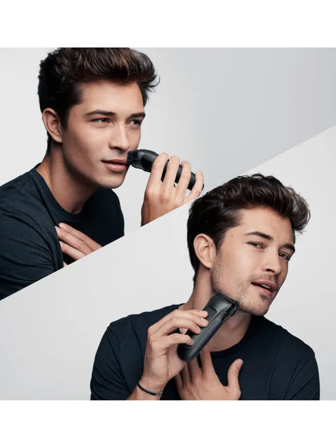 – Präzisions-Scherkopf ermöglicht es, schwer erreichbare Bereiche, wie unter der Nase und am Hals, problemlos zu rasieren