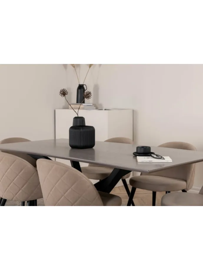 Das Esstischset „PiazzaGRBL“, ein Esstisch in Grau und 6 Stühle aus „Velvet Stitches“ in Beige ist ein Esstischset in Farbe, das sowohl Stil als auch Funktionalität in Ihr Zuhause bringt. PiazzaGRBL Esstischset Esstisch grau und 6 Velvet Stitches Stühle beige. Piazza-Tisch 60-29892-858. Tisch cm: L180 x T90 x H76. Tisch: Holz, Eisen, MDF, Furnier. Velvet Stitches Stuhl 60-19925-810. Menge 6 Stk. Stuhl cm: B50 x H76,5 x T57. Sitzhöhe cm: 46,5. Sitztiefe cm: 42,5. Sitzbreite cm: 41. Maximales Gewicht kg: 200. Stoff. Stuhl: Schaumstoff, Sperrholz, Polyesterleinen, Baumwollfasern, Eisen. Dieses Produkt wurde mit viel Liebe zum Detail hergestellt, was sowohl Ästhetik als auch hohe Haltbarkeit gewährleistet. Bei der Gestaltung wurde sowohl auf Funktionalität als auch auf Stil geachtet, was es zur perfekten Wahl für jeden Raum in Ihrem Zuhause macht. Die verwendeten Materialien sind von hoher Qualität, was dem Produkt eine lange Lebensdauer verleiht und dafür sorgt, dass es dem täglichen Gebrauch standhält. Ob zur Aufbewahrung oder als dekorative Ergänzung, dieses Produkt wertet Ihre Einrichtung auf und bringt zusätzlichen Komfort und Eleganz in Ihr Zuhause.