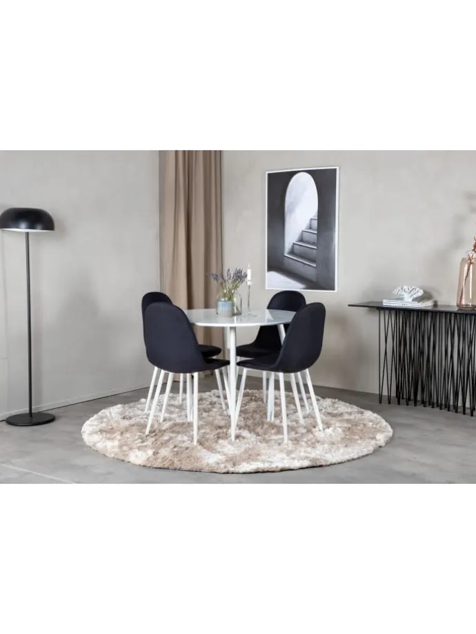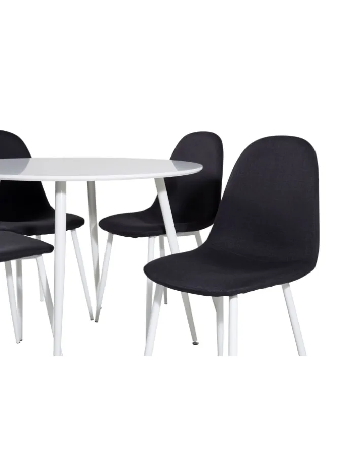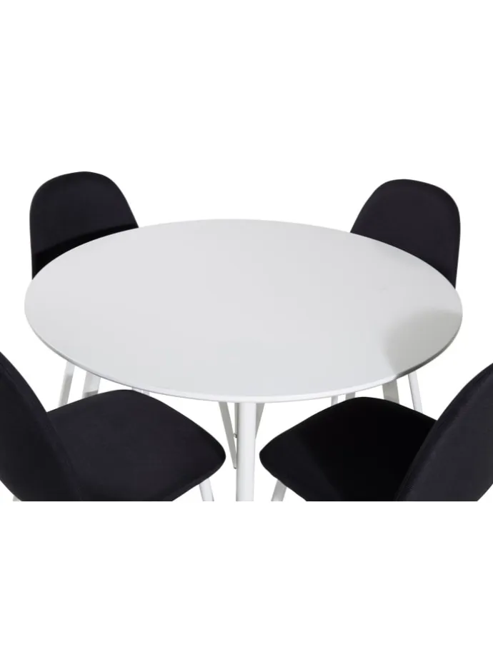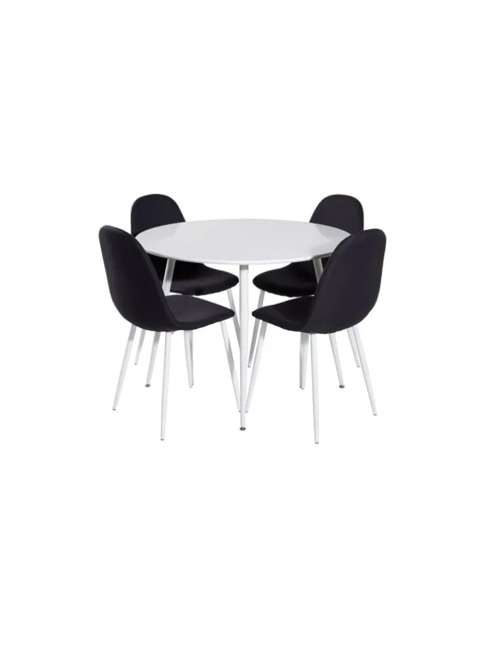 PlazaWHWH100 Esstisch-Set, Esstisch weiß und 4 Polar-Stühle schwarz, weiß ist ein Esstisch-Set in Farbe, das sowohl Stil als auch Funktionalität in Ihr Zuhause bringt. PlazaWHWH100 Esstischset Esstisch weiß und 4 Polar Stühle schwarz, weiß. Plaza-Tisch 60-17940-300. Øcm 100. Tisch cm: L100 x T100 x H75. Tisch: MDF, Stahl. Polarstuhl 60-19902-008. Menge 4 Stk. Stuhl cm: B44 x H87 x T53. Sitzhöhe cm: 45,5. Sitztiefe cm: 39,5. Sitzbreite cm: 41. Maximales Gewicht kg: 110. Stoff. Stuhl: 100 % Polyester, Holz, Schaumstoff, Stahl. Dieses Produkt wurde mit viel Liebe zum Detail hergestellt, was sowohl Ästhetik als auch hohe Haltbarkeit gewährleistet. Bei der Gestaltung wurde sowohl auf Funktionalität als auch auf Stil geachtet, was es zur perfekten Wahl für jeden Raum in Ihrem Zuhause macht. Die verwendeten Materialien sind von hoher Qualität, was dem Produkt eine lange Lebensdauer verleiht und dafür sorgt, dass es dem täglichen Gebrauch standhält. Ob zur Aufbewahrung oder als dekorative Ergänzung, dieses Produkt wertet Ihre Einrichtung auf und bringt zusätzlichen Komfort und Eleganz in Ihr Zuhause.