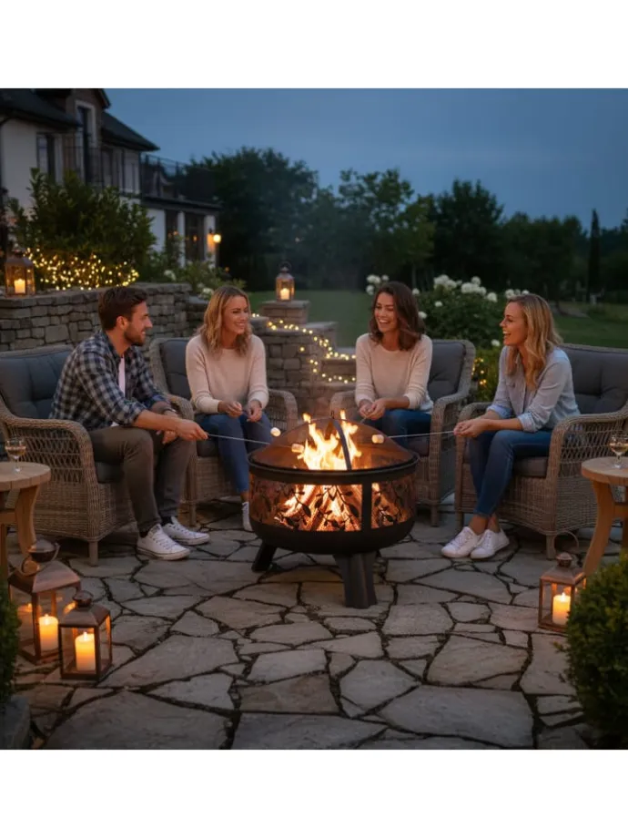 Ein Lagerfeuer im Garten, Marshmallows und Stockbrot rösten und das Knistern der Flammen genießen – mit dieser Feuerschale holen Sie sich den Traum vom eigenen Lagerfeuer nachhause. Die schöne Feuerstelle eignet sich für die Terrasse und den Garten und die hohen Füße schützen Ihren Rasen vor allzu großer Hitze. Der Funkenschutz schränkt die Höhe der Flammen und den Funkenflug ein und schützt so die Umgebung. Für ein loderndes Feuer sind Schürhaken und ein Feuerrost für Luftzirkulation mit dabei.