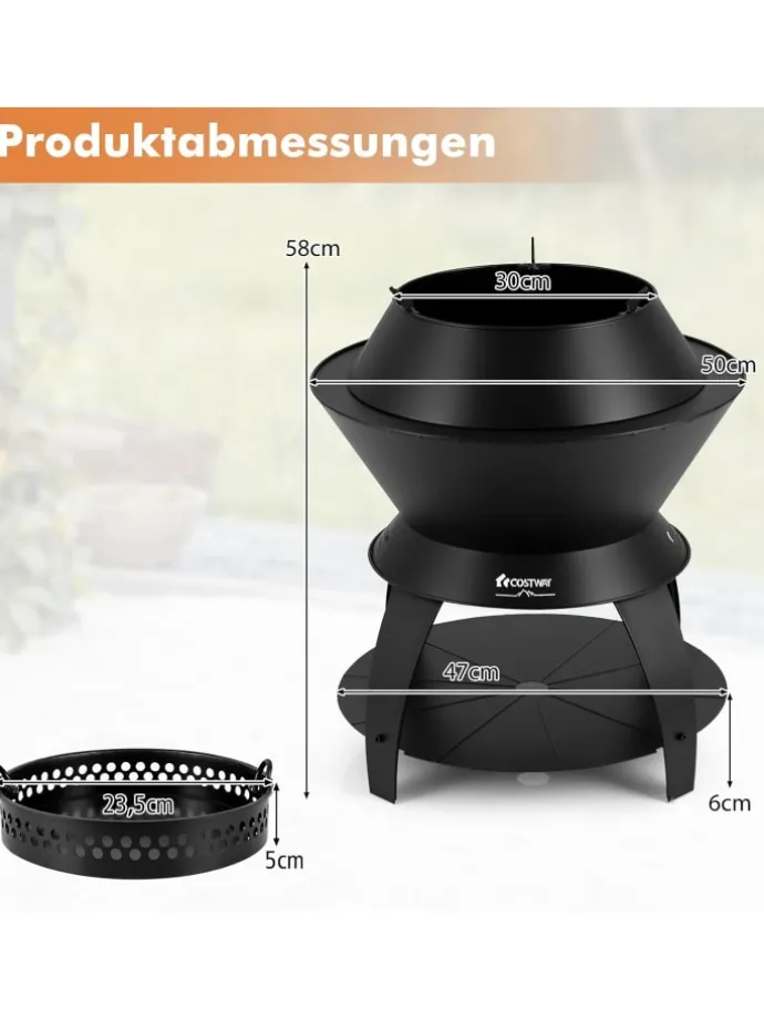 Perfekt als Kochstelle, Lagerfeuer oder BBQ-Grill (Grill nicht enthalten)