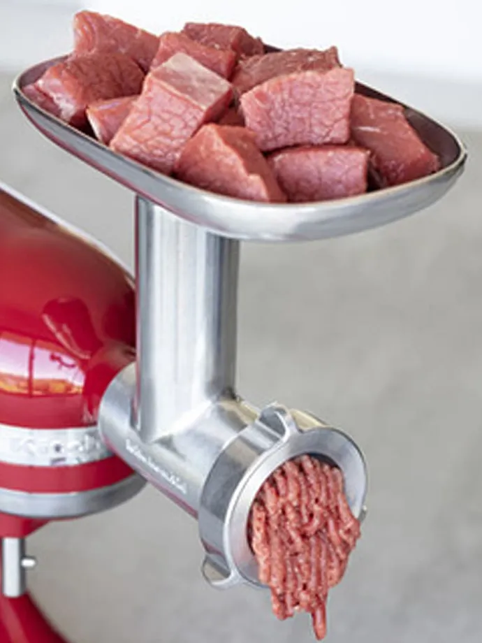 – zum Hacken von frischem Fleisch für Wurst und Burger, Reiben von Hartkäse, Zerkleinern von trockenem Brot und mehr