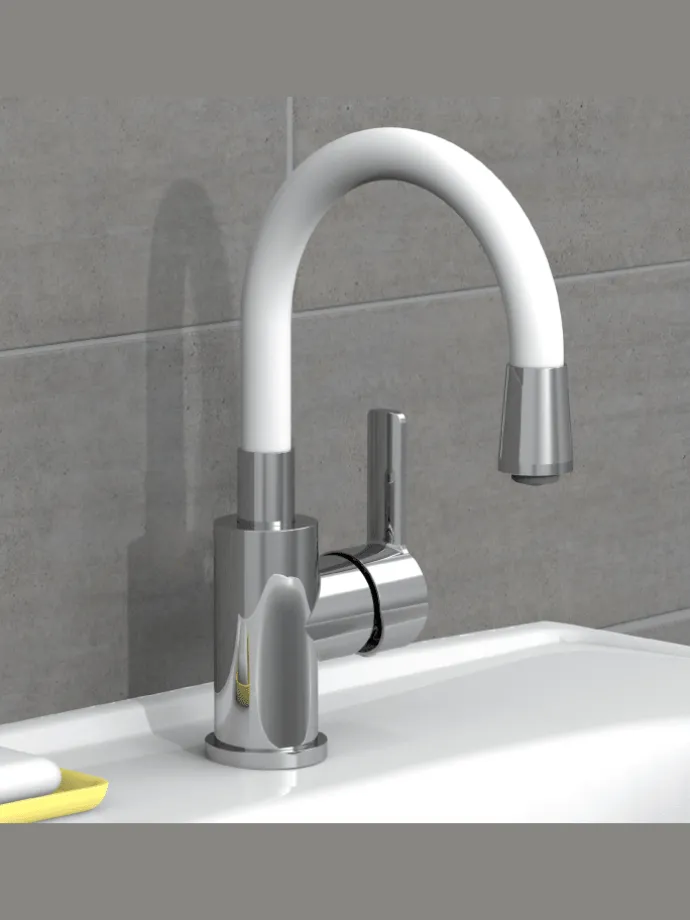 Diese Waschtischarmatur ist eine gelungene Kombination aus Funktion und Design. Der farbige Soft-Touch-Auslauf ist nicht nur ein Hingucker, sondern auch besonders praktisch in der Anwendung. Durch sein flexibles Material lässt er sich in alle Richtungen biegen und bietet damit vielfältige Einsatzmöglichkeiten.