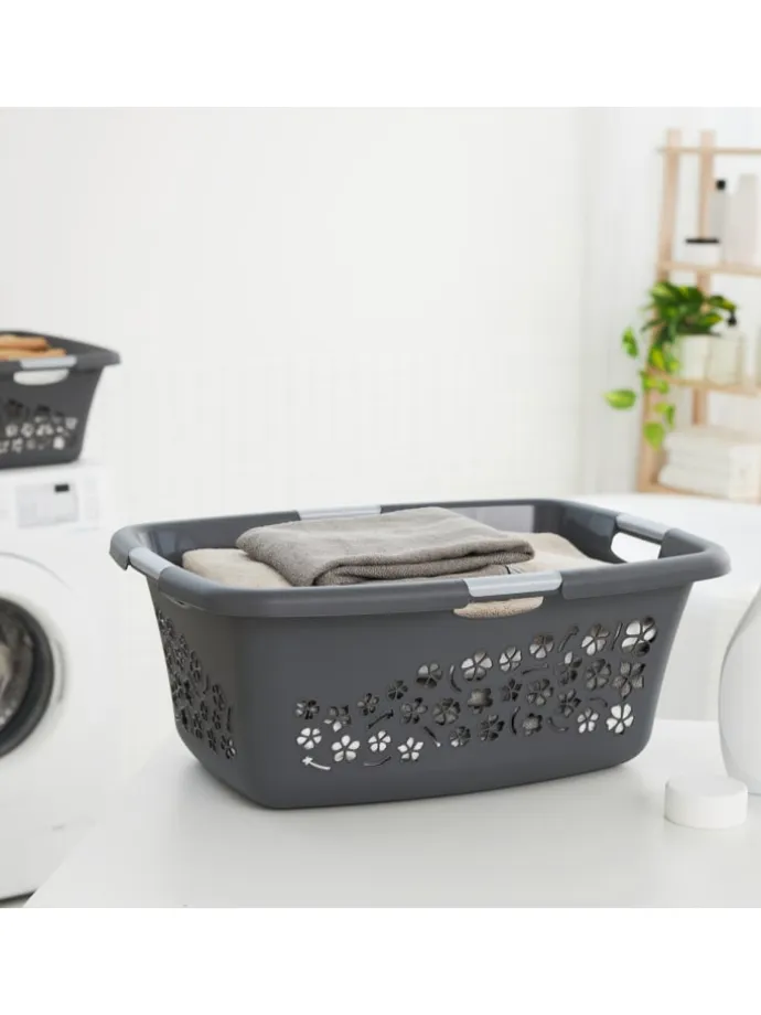 Der funktionale Rotho Wäschekorb FLOWERS erleichtert Ihnen nicht nur das Sammeln und Transportieren von Schmutz- und Bügelwäsche, sondern eignet sich auch hervorragend als vielseitiger Haushaltskorb für Einkäufe oder zum Einsortieren.