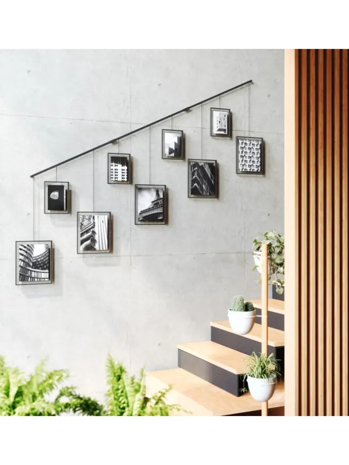 Exhibit“s flexible Ausrichtung macht ihn zur idealen Collage für den Treppenaufgang, da diese schräg angebracht werden kann.