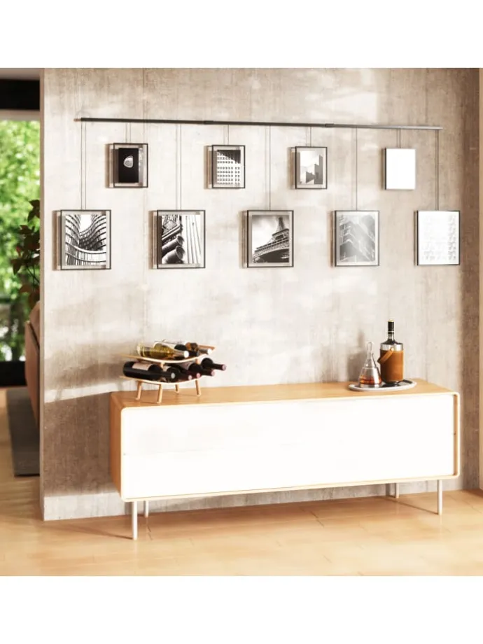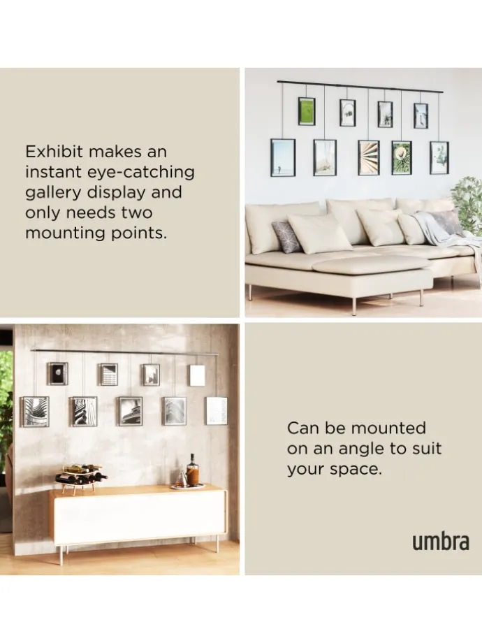 Setzen Sie mit Exhibit in Ihrem Wohnzimmer, Schlafzimmer, Büro, Studio oder im Eingang einen modernen Dekor Akzent während Sie Ihre Lieblingsfotos und Kunstwerke kurieren.