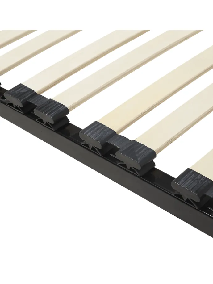 Stabiler, freistehender Doppel-Lattenrost mit Metallrahmen. Mit diesem hochwertigen Lattenrost liegen Sie genau richtig. Die extrem belastbare und stabile Rahmenkonstruktion mit 48 Federleisten garantiert einen angenehmen und erholsamen Schlaf. Der Lattenrost ist für alle Matratzentypen geeignet und sorgt für eine flexible Abfederung jeglicher Bewegung. Die Lattenhalterungen sind aus synthetischem Gummi und die Federleisten aus Pappelholz, welches extrem robust und dennoch flexibel ist.