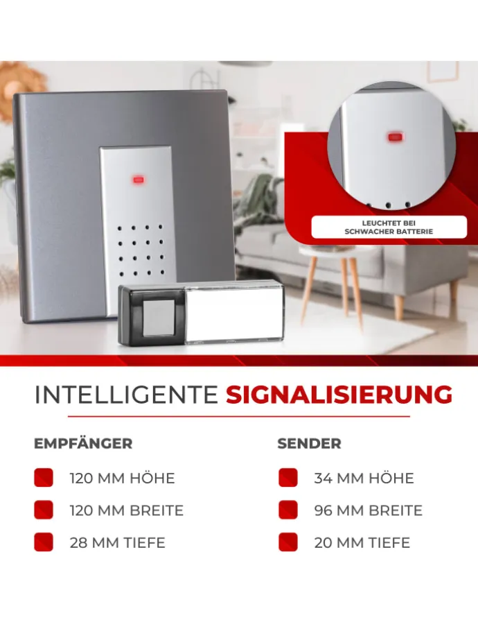 Der HX® Square Funkempfänger ist die perfekte Erweiterung für Ihr HX®-System. Mit seiner kraftvollen Lautstärke und einer großzügigen Reichweite stellt er sicher, dass Sie Ihr Klingelsignal in jeder Ecke Ihres Zuhauses hören können. Dank einstellbarer Lautstärkestufen und einer Stummschaltfunktion bietet er optimale Anpassungsfähigkeit und Flexibilität.