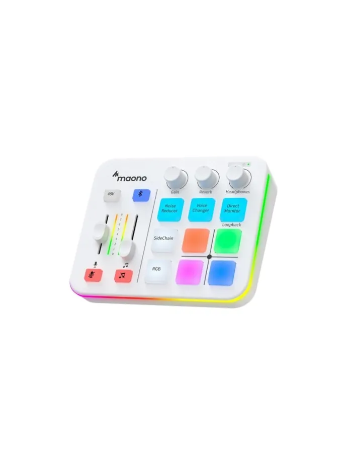 Die Maono G1 Neo Soundkarte in Weiß ist ein kompaktes, leistungsstarkes USB-Audiointerface, das speziell für Streaming, Podcasts, Gaming, TikTok, YouTube und professionelle Online-Kommunikation entwickelt wurde. Mit einer Vielzahl an Effekten, EQ-Funktionen und Reglern ermöglicht sie eine klare, optimierte und individuelle Klangbearbeitung – ideal für Creator, Streamer und Podcaster.