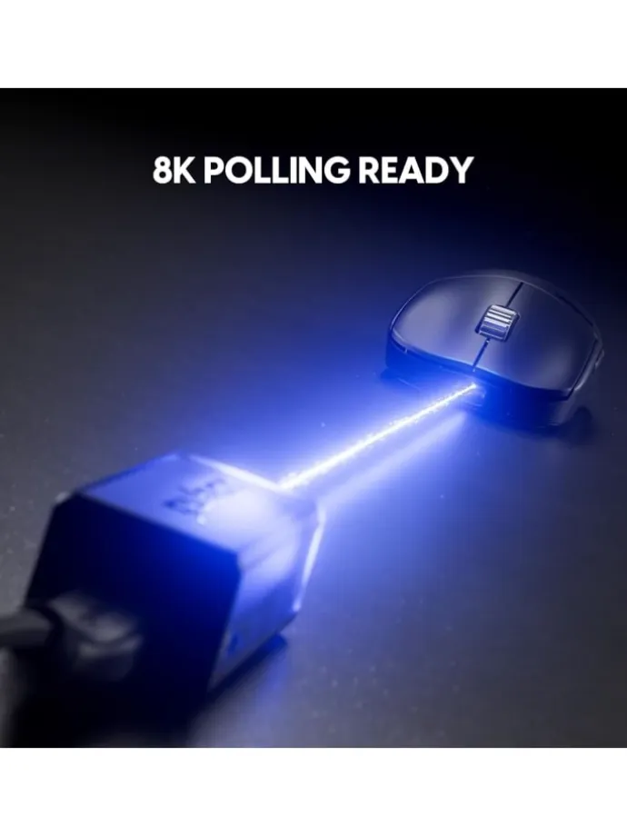 8K Polling Ready – Entwickelt für 8K-Displays, bietet es eine ultrahohe Abfragerate und liefert bis zu 8 x mehr Datenberichte pro Sekunde im Vergleich zu Standard-1000-Hz-Raten. Dies sorgt für blitzschnelle Reaktionsfähigkeit und minimale Eingabeverzögerung und bietet nahtlose Updates zwischen Maus und Monitor.