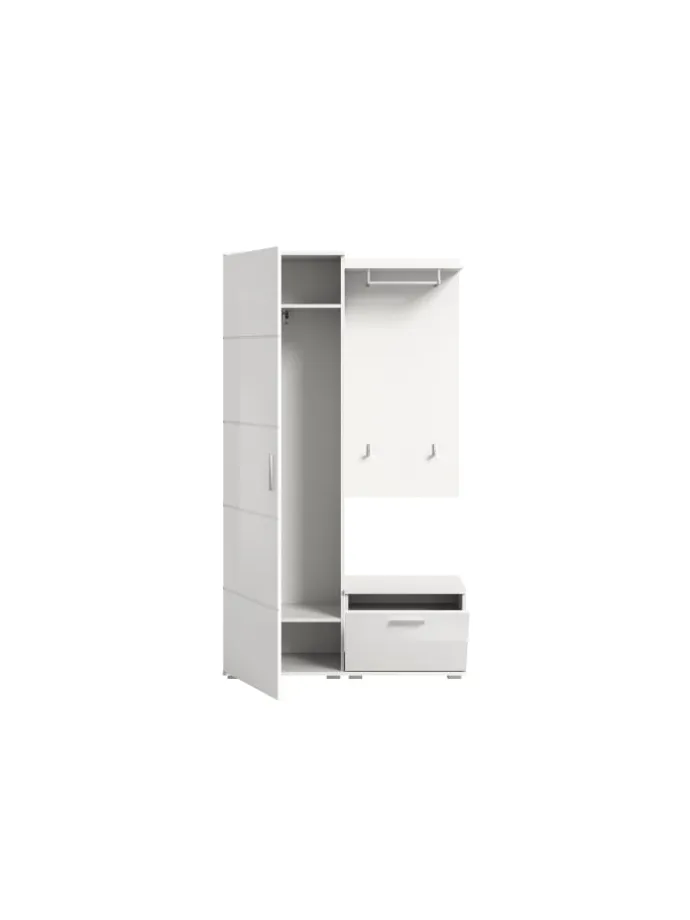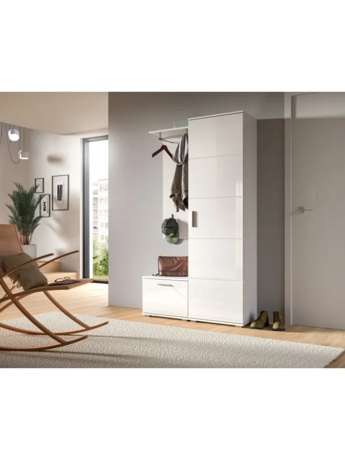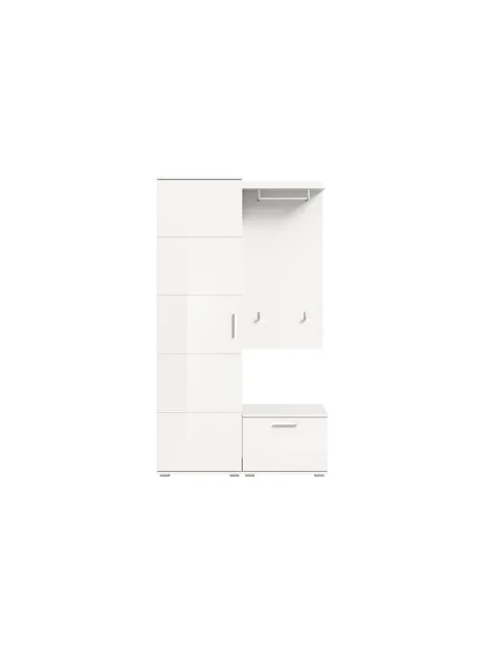 Garderobenkombination (B/H/T: 110x191x37 cm) in weiß und weiß Hochglanz