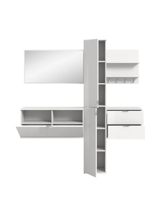Garderobenkombination (B/H/T: 174x191x37 cm) in weiß hochglanz
