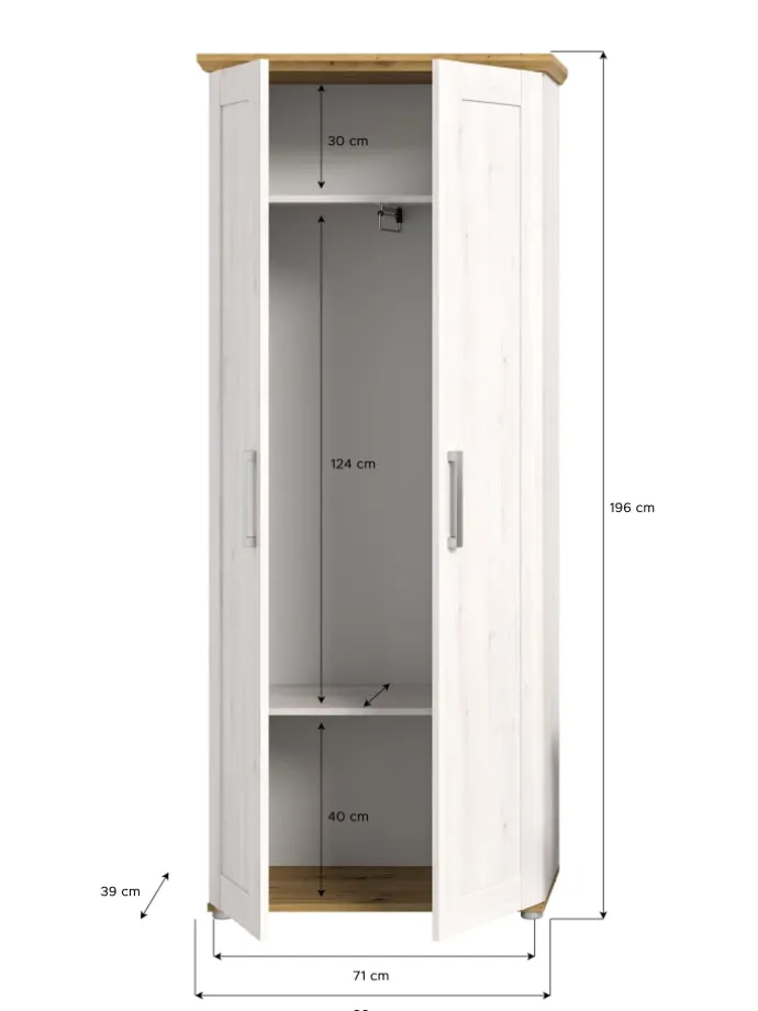 Erlebe die perfekte Kombination aus Funktionalität und Ästhetik mit unserem Garderobenschrank in Sibiu Lärche Nachbildung für Deinen Flur oder Deine Diele. Mit großzügigen Maßen von 80x196x39 cm bietet dieser ausreichend Platz für Deine Garderobe und fügt sich nahtlos in jedes Raumkonzept ein.