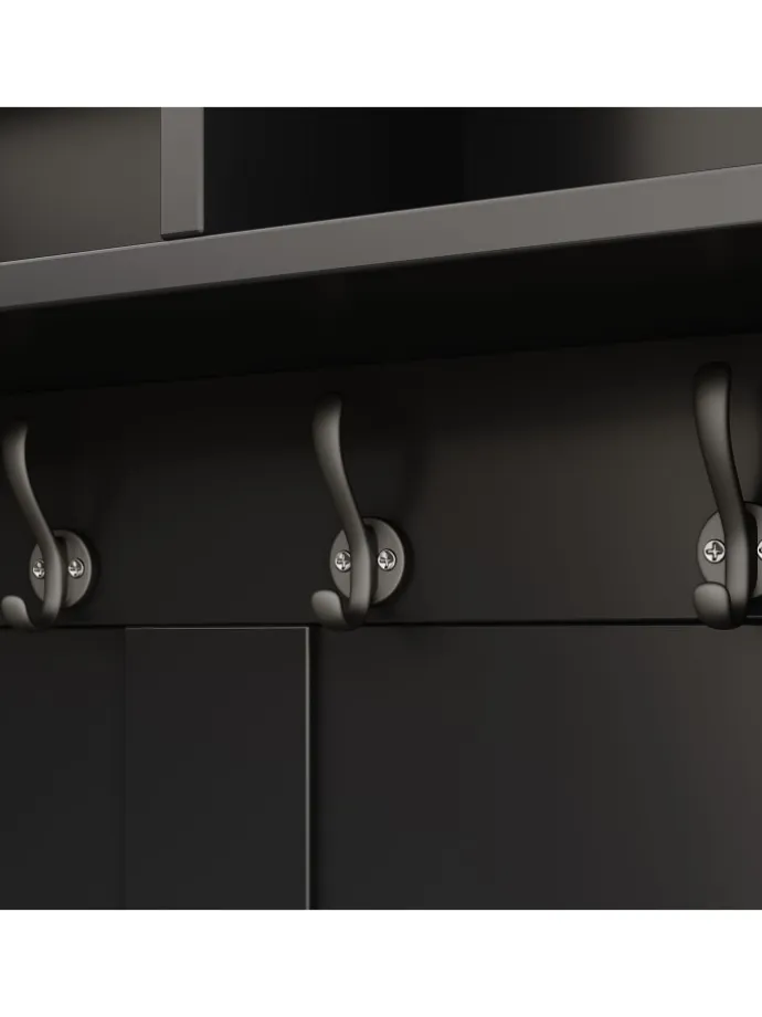 Organisationssystem: 6 schwarze Kleiderhaken + Lochwand für Schlüssel und Accessoires