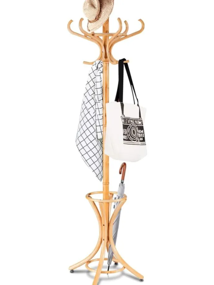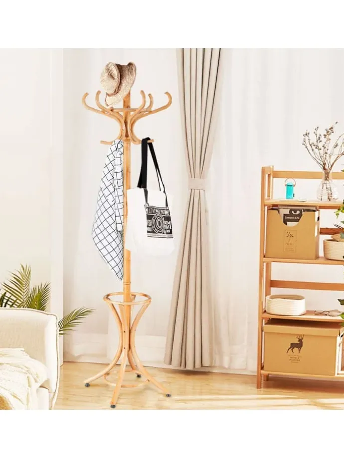 Unser Garderobenständer ist eine perfekte Ware, um Ihr Zuhause ordentlicher zu halten. Sie können Ihre Hüte, Mäntel, Handtaschen und Regenschirm in einem organisierten Ort frei abstellen. 12 Haken bieten reichlichen Platz zum Aufhängen an. Es passt auch perfekt in die Ecke, ohne viel Platz in Halle oder Schlafzimmer zu nehmen. Mit dem schlichten und elegant Aussehen ist der Kleiderständer ein echter Blickfang in jedem Raum. Die Montage ist unkompliziert.