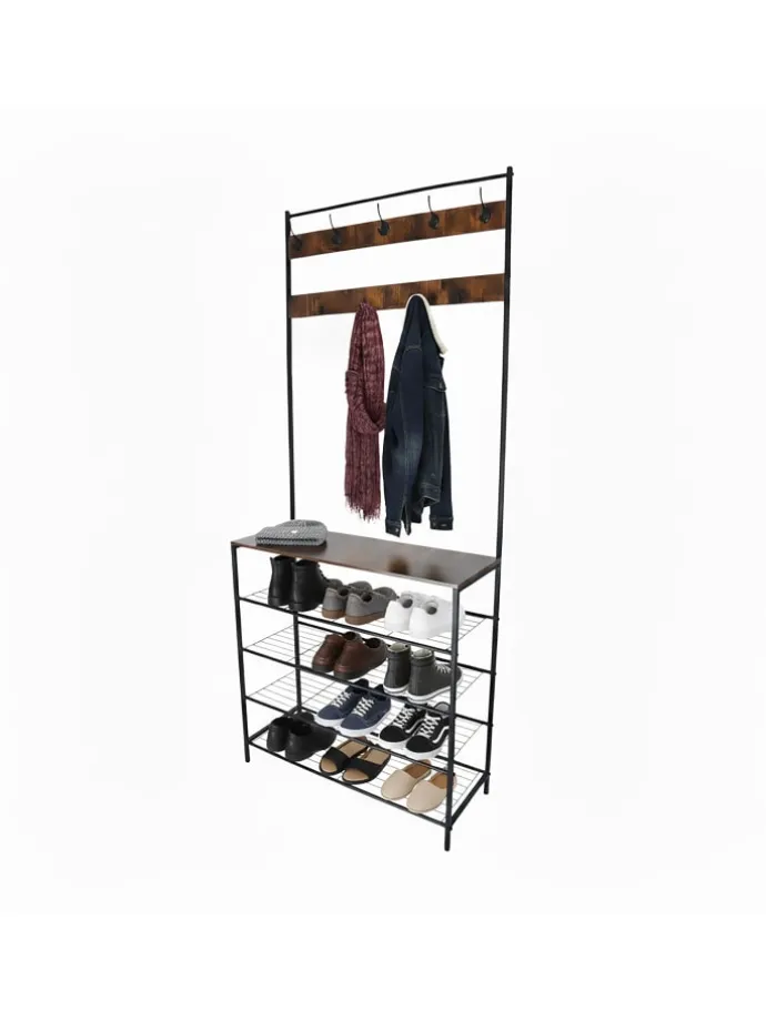– 2 in 1 Garderobengestell für Jacken und Schuhe