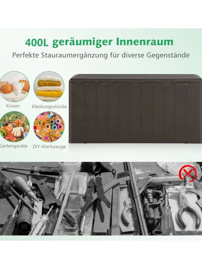 400 L Innenraumkapazität zur Aufbewahrung von Werkzeugen, Poolzubehör, Kissen und mehr