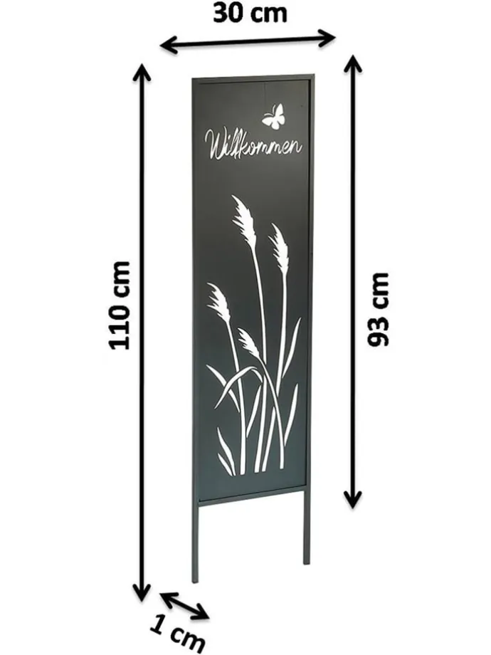 WILLKOMMEN – Unsere Gartentafel Gartenschild WILLKOMMEN von Kobolo wertet Ihren Eingangsbereich optisch auf und läd zum verweilen ein. ÜBERALL PASSEND – egal ob im Garten, im Eingangsbereich, auf der Terrasse oder auf dem Balkon, mit unserem Gartenstecker erhalten Sie eine Gartendekoration für jeden Bereich. Die Höhe des Schildes beträgt 93 cm + 17 cm Erdspieße.