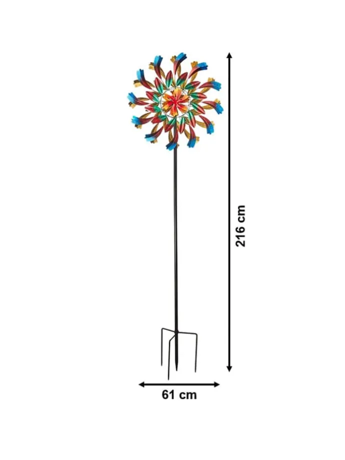 Dieses farbenfrohe Windrad SOLE von Kobolo bringt Leben in Ihren Garten! Mit seinen vielen, blütenförmig angeordneten Flügeln in kräftigem Blau, Rot, Grün und Gelb entsteht ein wunderschönes Farbspiel – besonders, wenn sich das Rad bei leichtem Wind in Bewegung setzt. Ob als Blickfang im Vorgarten oder als verspieltes Element auf der Terrasse – das Windrad ist ein echtes Highlight für alle, die Bewegung und Farbe lieben. Das Windrad wird in wenigen Teilen geliefert und lässt sich mit wenigen Handgriffen einfach und schnell zusammenbauen. Dieser Gartenstecker ist für normale Wetterverhältnisse gedacht. Um möglichst lange Freude an Ihrem Windrad zu haben, bringen Sie es bitte im Winter oder bei Sturm in einem Abstellraum unter.