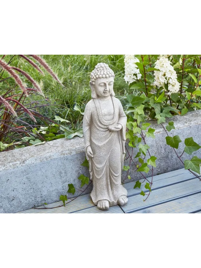 Dekorative Buddha-Figur für den Garten. Diese faszinierende handgefertigte Buddha-Figur strahlt Ruhe und Gelassenheit aus und ist die perfekte Ergänzung für jedes Zuhause. Die mit Sorgfalt gefertigten Details zeugen von höchster Handwerkskunst, während das vielseitige Design sowohl für den Innen- als auch für den Außenbereich geeignet ist. Ideal, um in Ihrem Wohnzimmer, Garten oder auf der Terrasse eine entspannende Atmosphäre zu schaffen, lädt dieses Dekorationsstück dazu ein, Ruhe und Achtsamkeit in Ihre Umgebung zu bringen. Ob als Blickfang oder dezenter Akzent, dieser Buddha sorgt für zeitlose Eleganz und Charme.