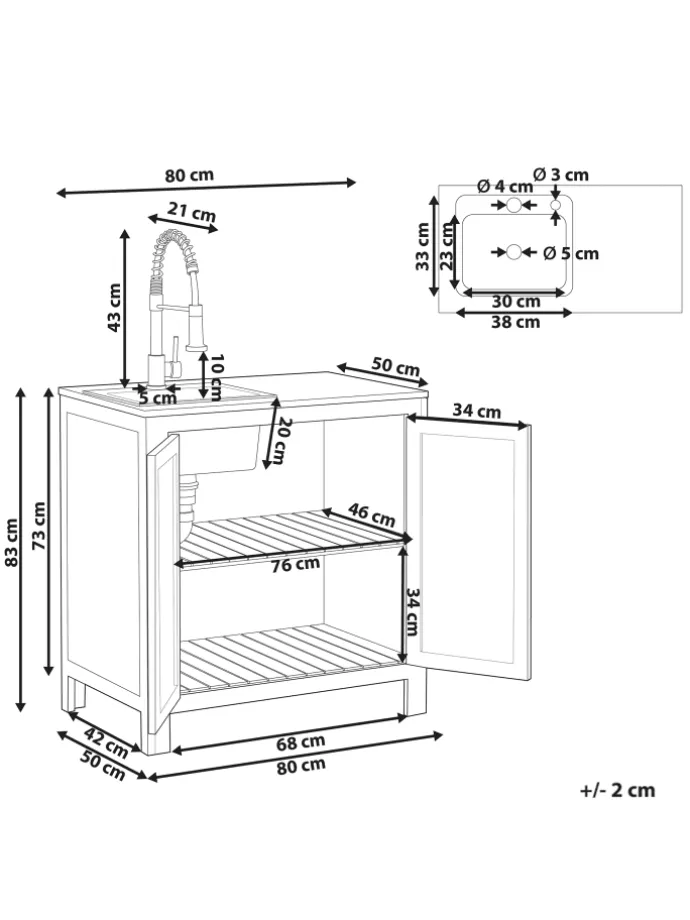 Zusatzinformationen: Bitte beachten Sie, dass die Gartenküche auf einer harten und ebenen Fläche (z.B. Zement- oder Fliesenboden) mit Zugang zum Wasserversorgungssystem aufgestellt werden sollte. Holz ist ein Naturprodukt. Farb- und Strukturunterschiede, Narben, Falten und sonstige Naturmerkmale sind Echtheitsbeweise und keine zur Reklamation berechtigende Fehler. Bitte beachten Sie, dass das Produkt aus Holz besteht, daher kann es mit der Zeit unter dem Einfluss der Witterung verblassen oder sich verfärben. Damit das folgende Produkt jahrelang seine Schönheit beibehält, stellen wir Ihnen ein ausführliches Pflegehandbuch zur Verfügung. Die Pflegeanleitung und Tipps zur richtigen Wartung Ihres neuen Produkts finden Sie finden Sie unten im Abschnitt „Verpackung und Montage“.