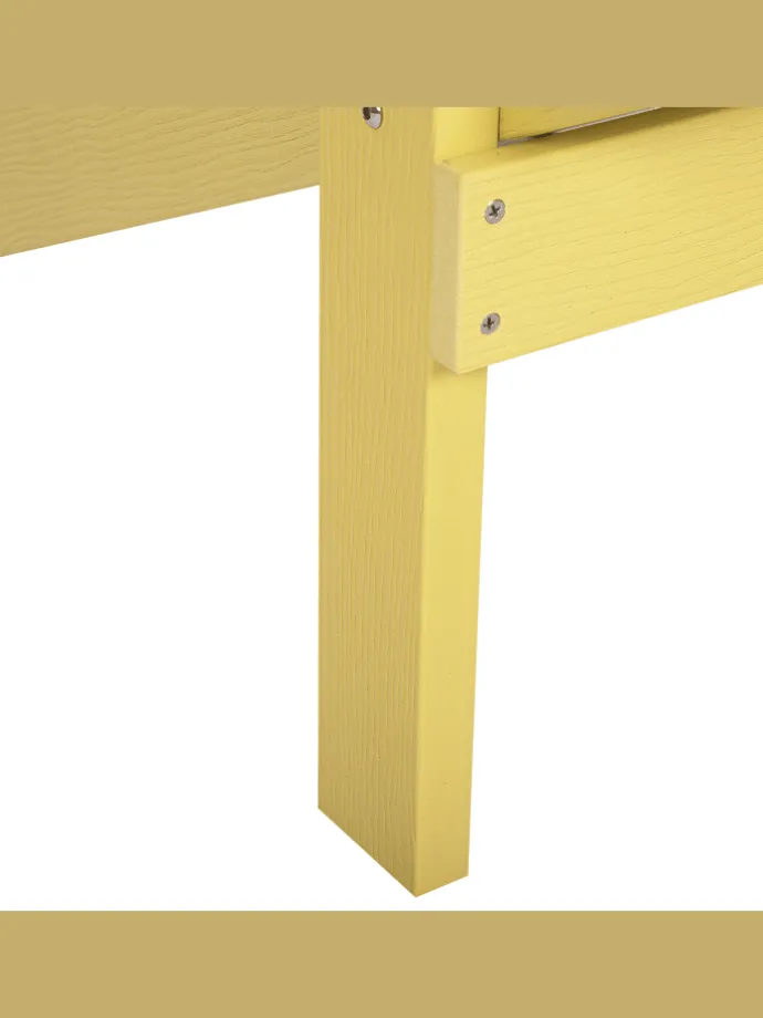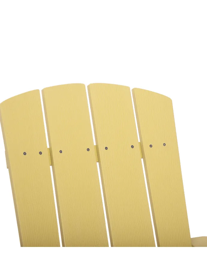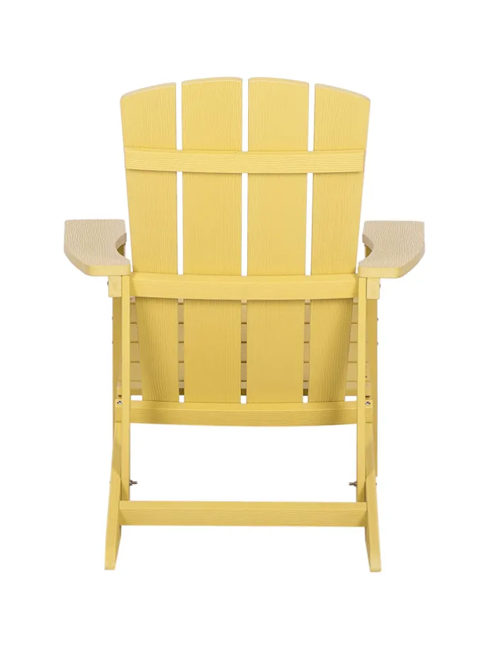 Moderner, gelber Gartenstuhl mit einzigartiger holz-typischer Maserung. Hochwertig, umweltschonend, beständig? Dieses interessante Modell ist all das, und noch viel mehr. Der Kunstholz-Stuhl verblüfft mit seiner täuschend echten Holzoptik und da er mit Edelstahlschrauben versehen ist, kann er Langjährig im Außenbereich genutzt werden. Auf den breiten Armlehnen lässt sich ein kaltes Getränk abstellen. Kaufen Sie einen Stuhl in einem anderen Farbton und kreieren Sie Ihre eigenen Farbvarianten indem Sie die Rückenlehnen der Stühle miteinander tauschen.