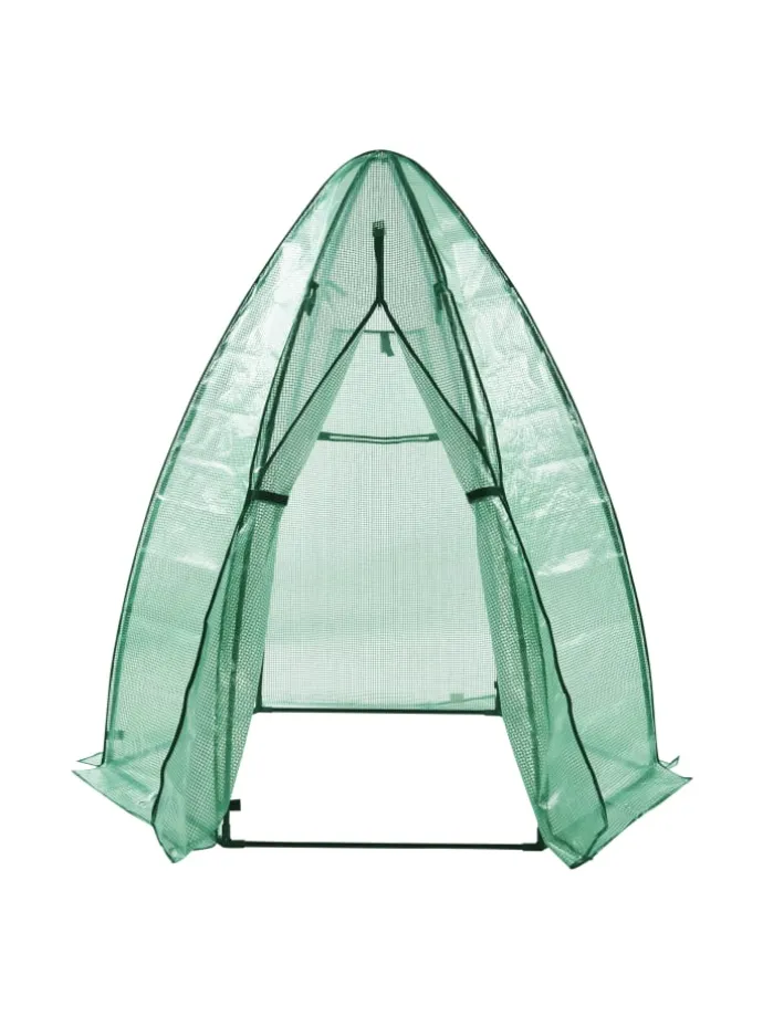 Dieses Pflanzenhaus bietet einen zuverlässigen Schutz vor Kälte, Frost, Schnee, Regen, intensiver Sonneneinstrahlung und unerwünschten Besuchern aus der Tierwelt. Dank seines Spitzdachs kann Regenwasser problemlos abfließen.
