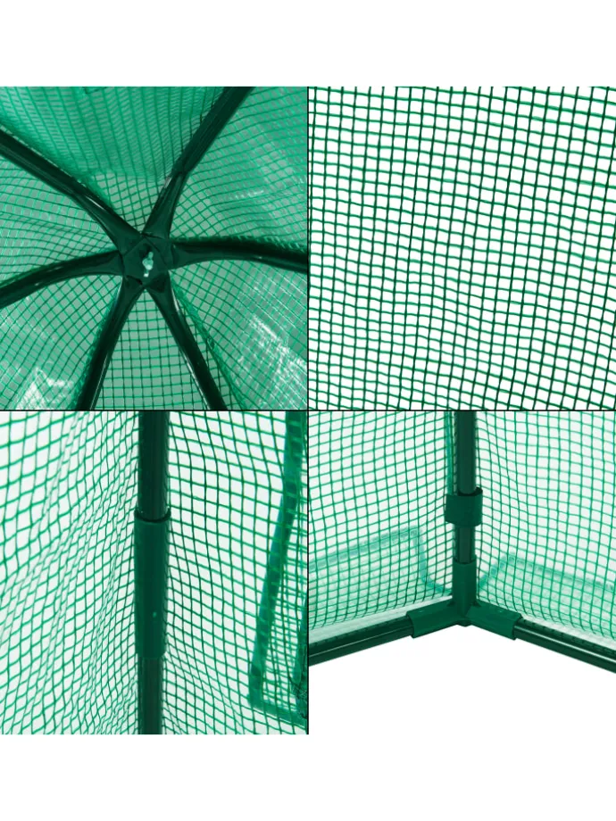 Die wasserfeste Folie dieses Gewächshauses ist äußerst strapazierfähig und reißfest. Der pulverbeschichtete Stahlrahmen gewährleistet eine stabile und zuverlässige Standfestigkeit.
