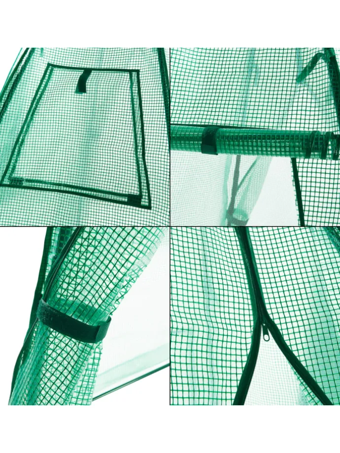 Die Tür ist mit einem Reißverschluss ausgestattet, was Ihnen einen bequemen Zugang zum Gießen und Düngen Ihrer Pflanzen ermöglicht. Ein aufrollbares Netzfenster sorgt für eine ausgezeichnete Luftzirkulation und hält ungebetene Kleintiere fern.