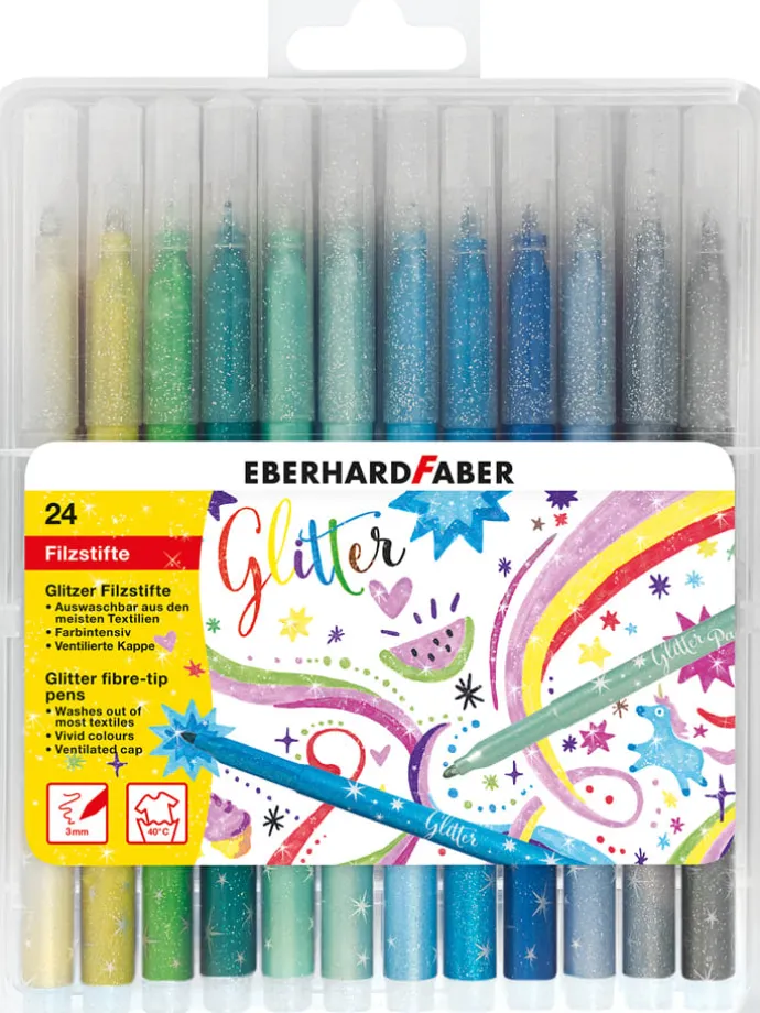 – Inhalt: 24 Glitzer-Fasermaler in verschiedenen Farben