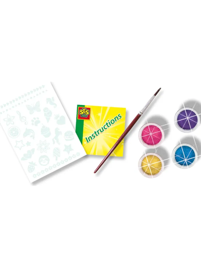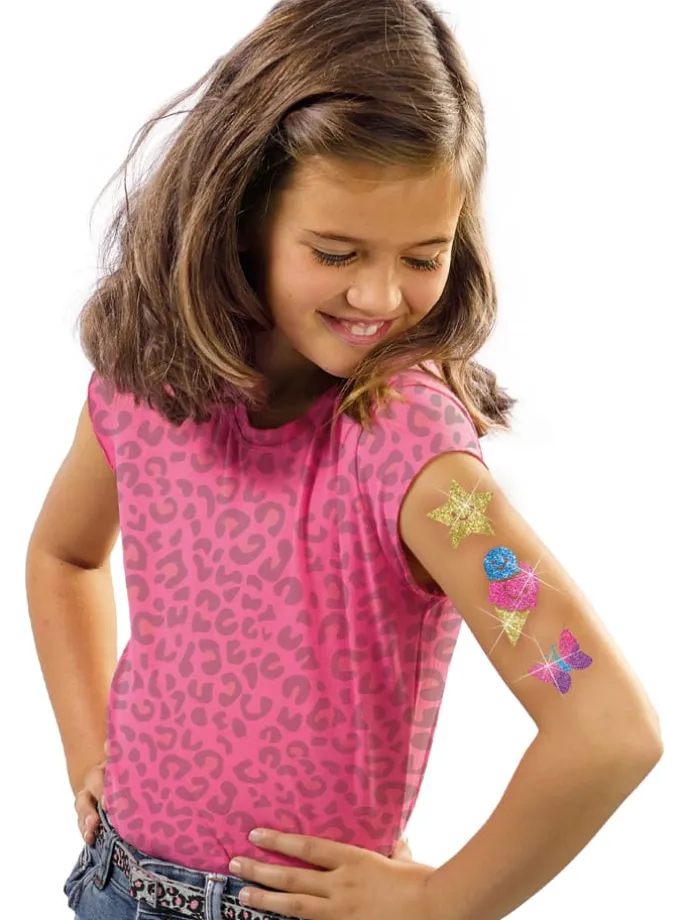 – Inhalt: Tattoo-Aufkleber, 4 Glitzerfarben, 1 Pinsel, Anleitung