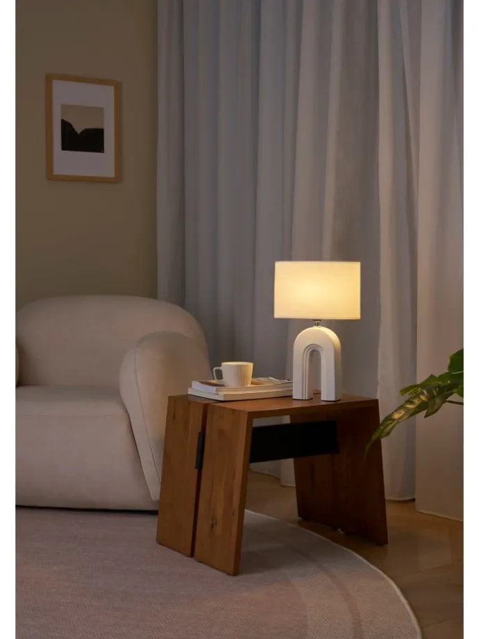 Glow of Purity Tischleuchte E14 max. 20W Weiß#Beige Stoff#Keramik