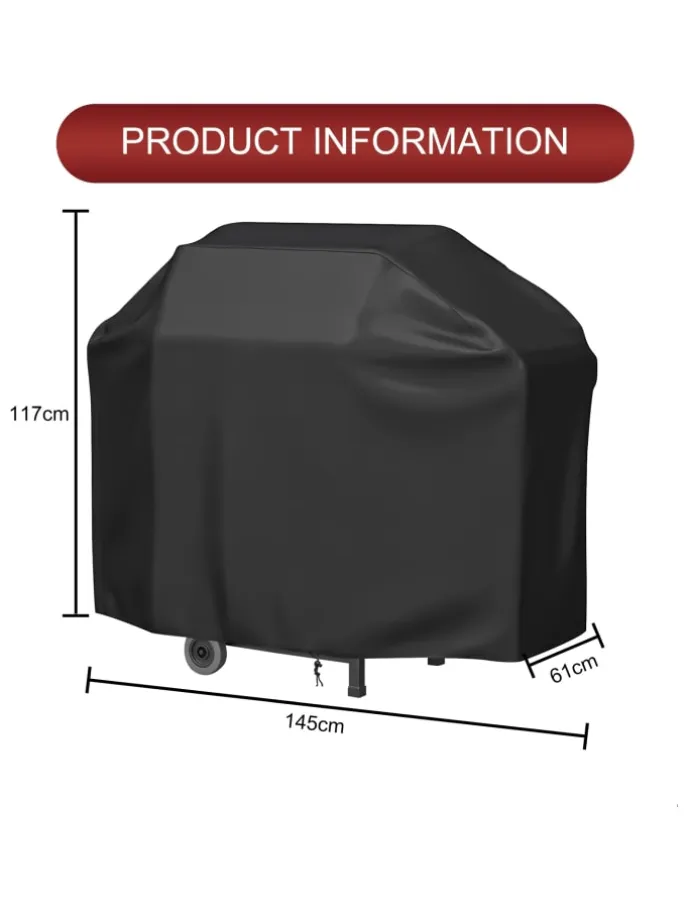 Sie erhalten eine Grillüberwurf in den Maßen 147 x 61 x 117 cm und eine praktische Aufbewahrungstasche.