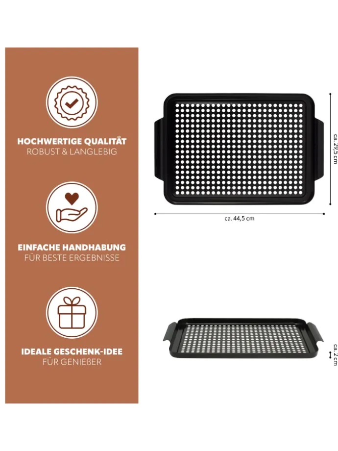 • 1x Grillplatte, ca. 44,5 x 2,5 x 29,5 cm (B/H/T)