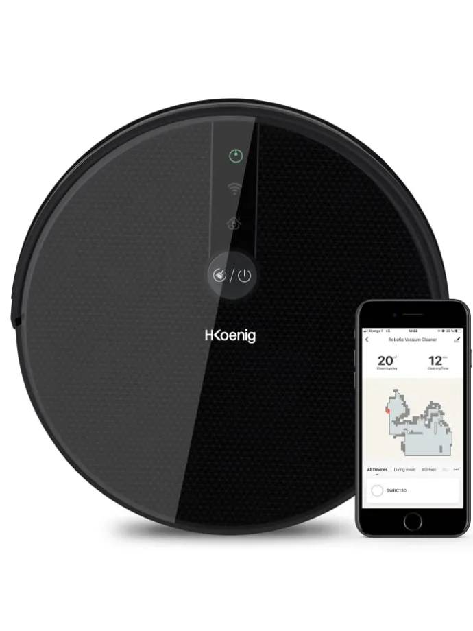 Der Saugroboter Watermop Gyro+ SWRC130 von H.Koenig reinigt und ist verbunden – er vereinfacht Ihnen das Leben. Egal ob Sie verreisen oder abends Gäste haben – auf den SWRC130 ist Verlass. Aktivieren Sie die Wifi-Funktion und verwenden Sie die Tuya Smart Anwendung. Ebenfalls kompatibel mit Google Home und Alexa. Dank der Raumgitter-Funktion (Gyro+) kann der Saugroboter den Innenraum methodisch reinigen. Eine optimale Filterung wird dank des HEPA Filters gewährleistet. Dank der drei Bürsten kann in allen Ecken gesaugt und gereinigt werden. Der Saugroboter SWRC130 geht automatisch an seinen Platz zurück um sich wieder aufzuladen. Für ein sauberes Zuhause.