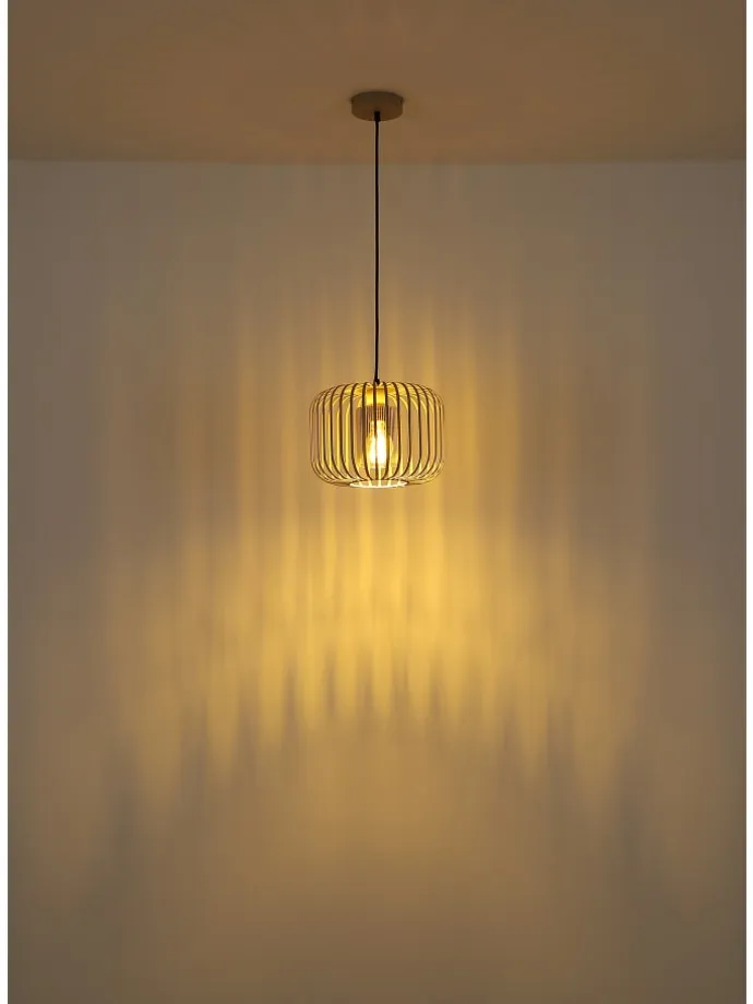 Hängeleuchte Metall sandfarben matt, Metallstäbe sandfarben, Glas rauchfarben, klar verlaufend, Kabel Textil Schwarz, Höhe kürzbar, ø: 280mm, H: 1200mm, exkl. 1x E27 40W 230V