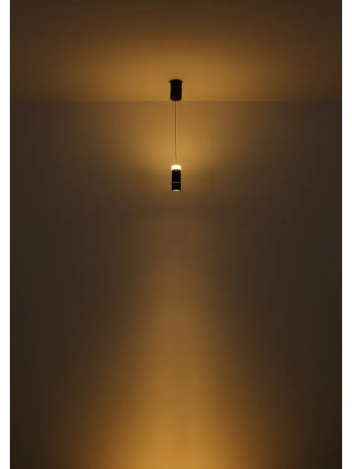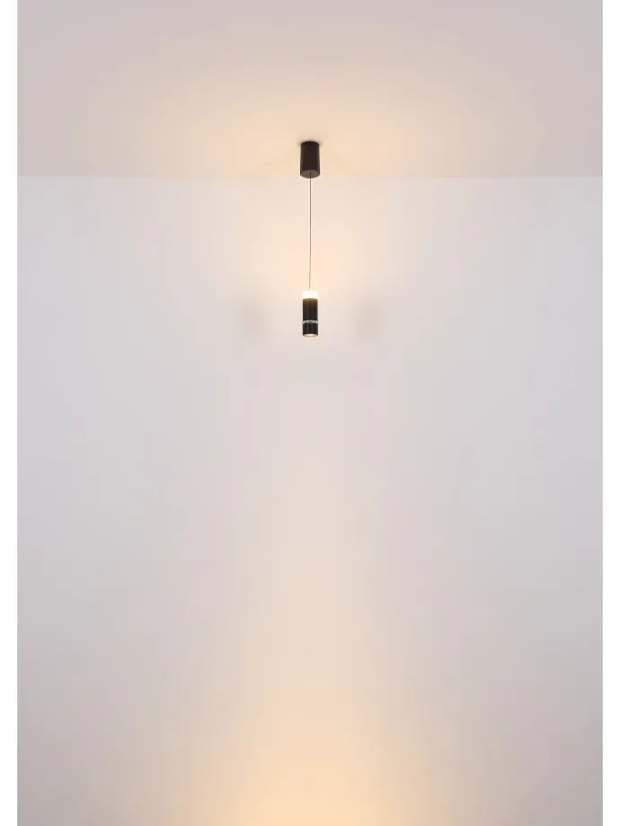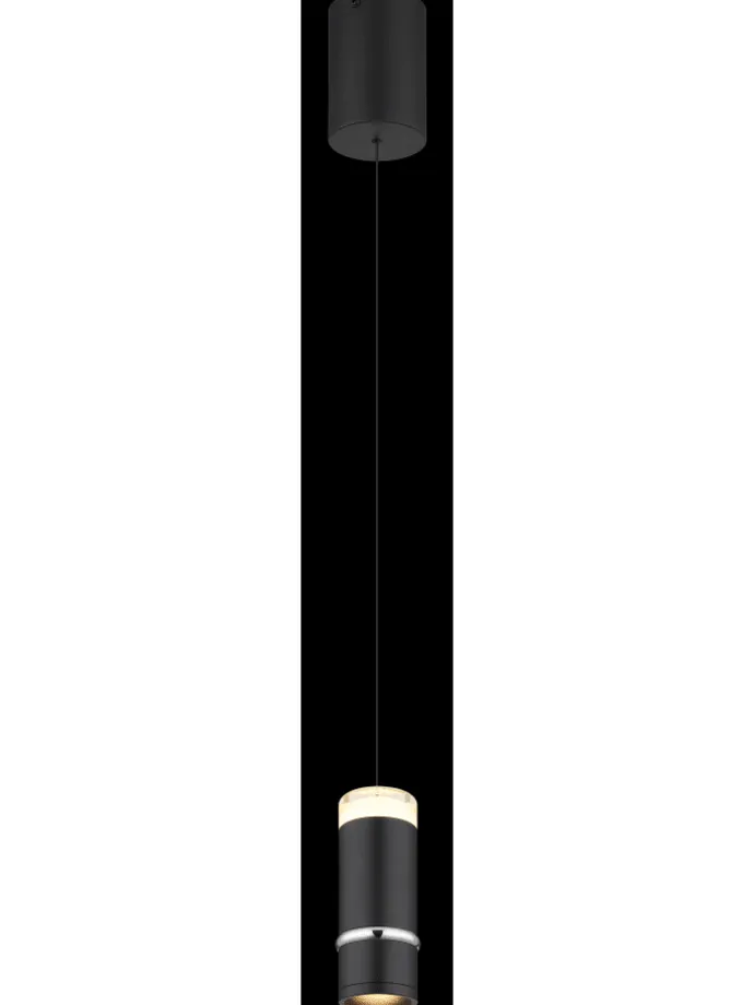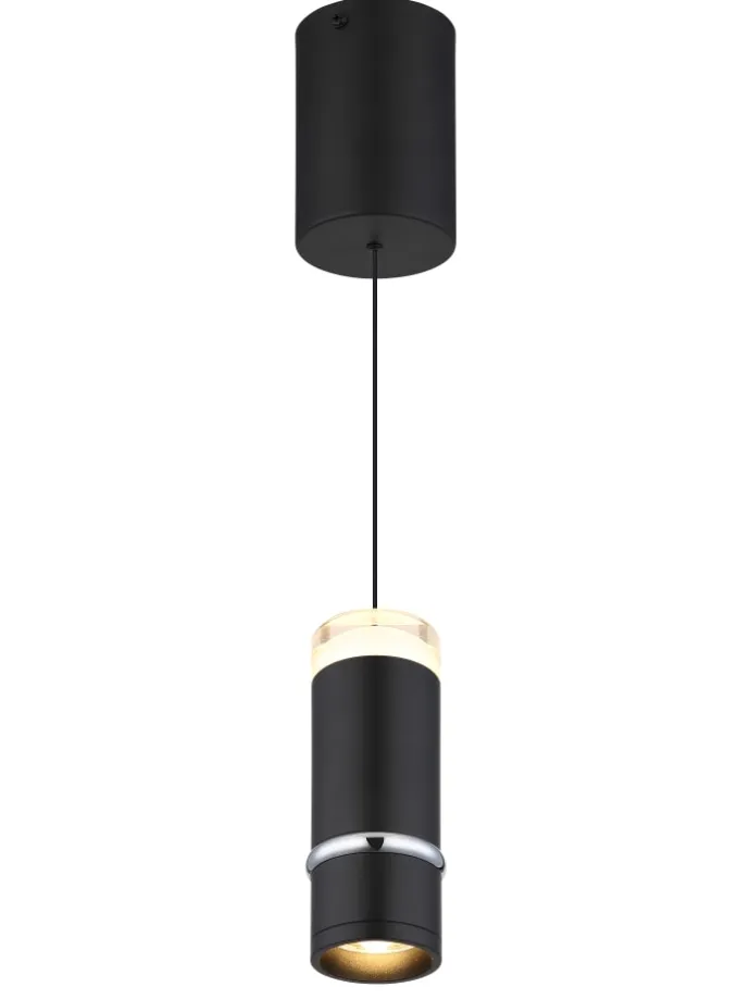 Hängeleuchte Metall schwarz matt, Metall schwarz matt, Chromring, Acryl satiniert, Kabel PVC Schwarz, Höhenverstellbar, Lichtkegel verstellbar, ø: 75mm, H: 1800mm, höhenverstellbar von 50-180cm, inkl. LED 6W 230V, 700lm Source, 400lm Output, 3000K