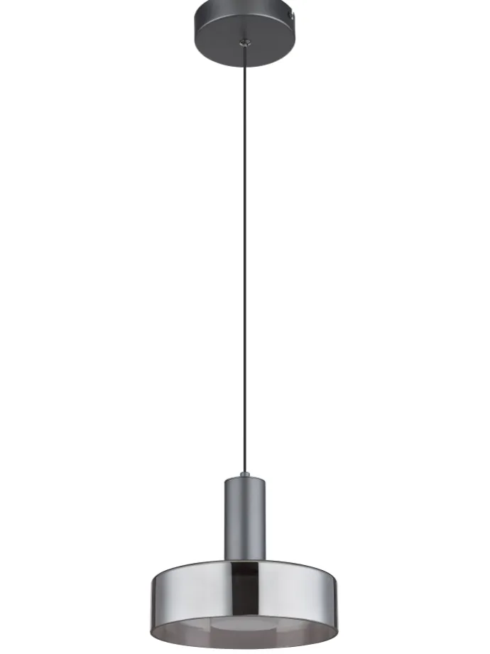 Hängeleuchte Aluminium Gebürstet grau matt, Metall grau gebürstet, Glas rauchfarben, Acryl satiniert, Kabel PVC Schwarz, Höhe kürzbar, ø: 220mm, H: 1500mm, inkl. LED 8W 230V, 950lm Source, 320lm Output, 3000K