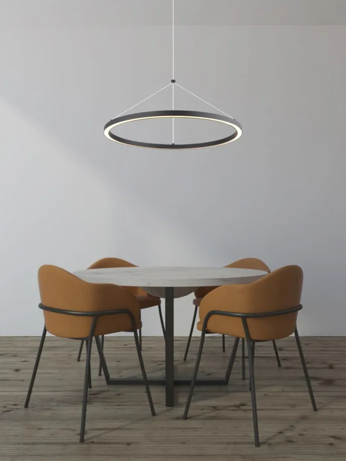 Hängeleuchte Metall schwarz matt, Aluminium schwarz matt, Kunststoff opal, mehrere Stufen über Wandschalter, Memoryfunktion, Höhe kürzbar, weitere Funktionen: 3 Lichtstufen: 100% – 50% – 10%, ø: 500mm, H: 1200mm, inkl. LED 36W 230V, 4000lm Source, 1400lm Output, 3000K
